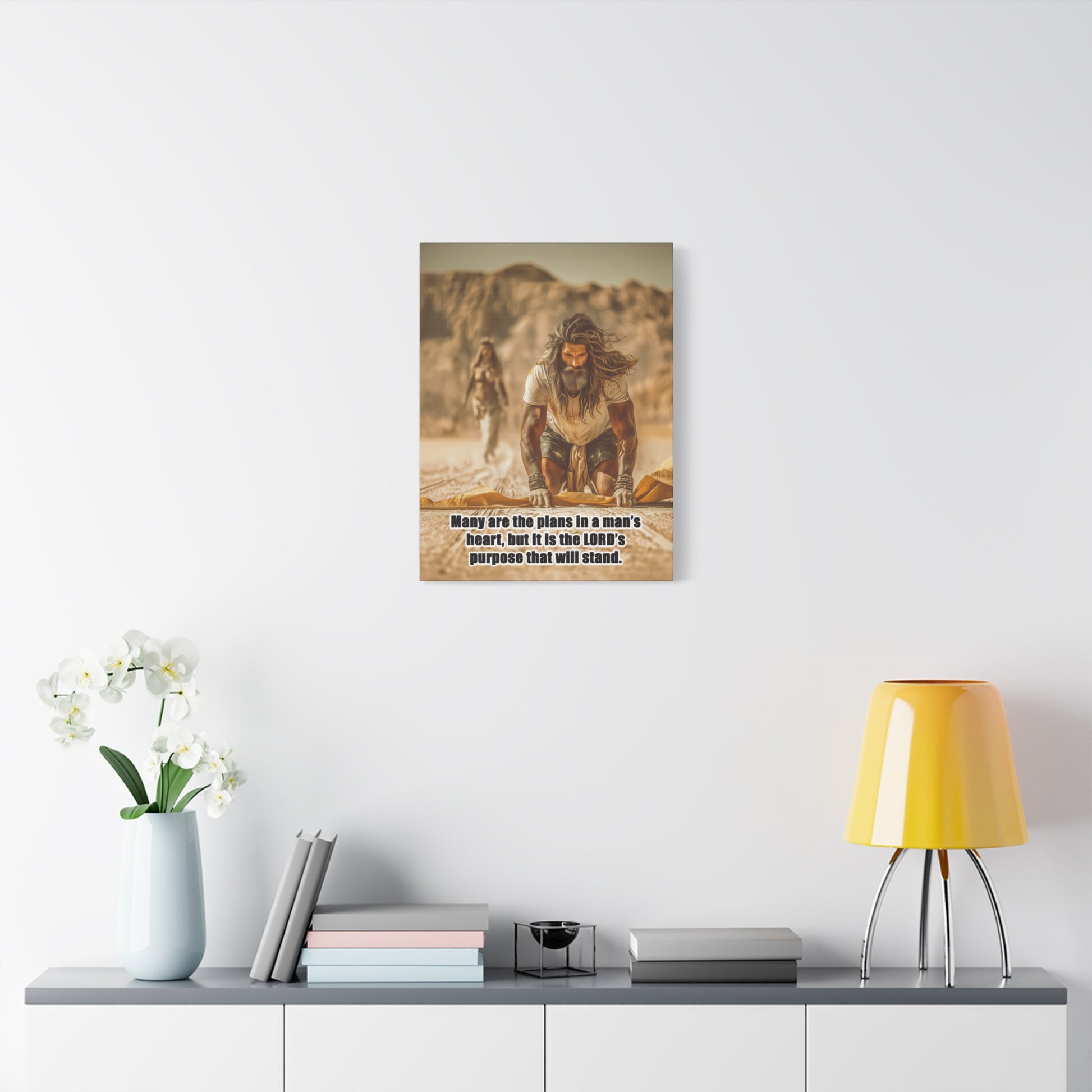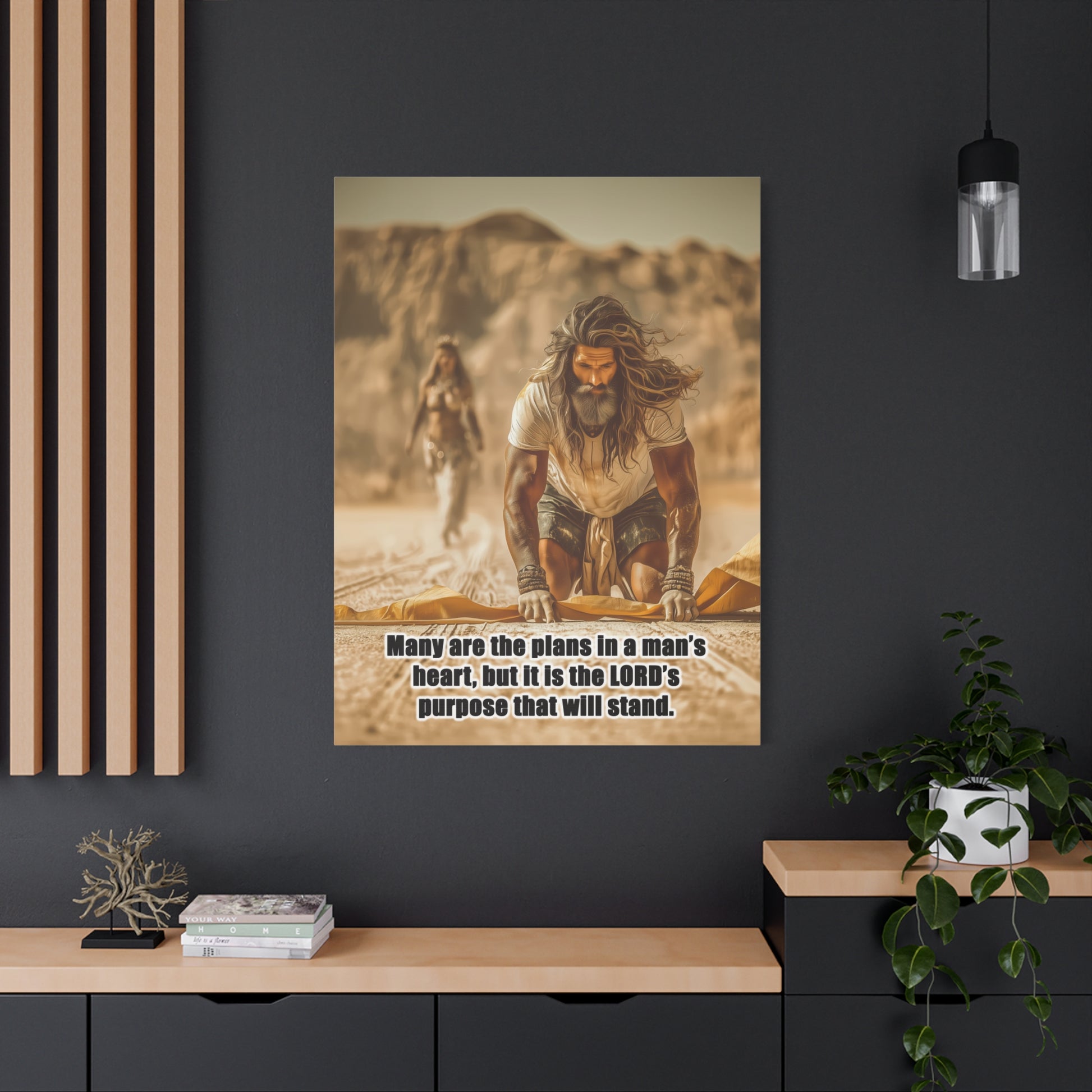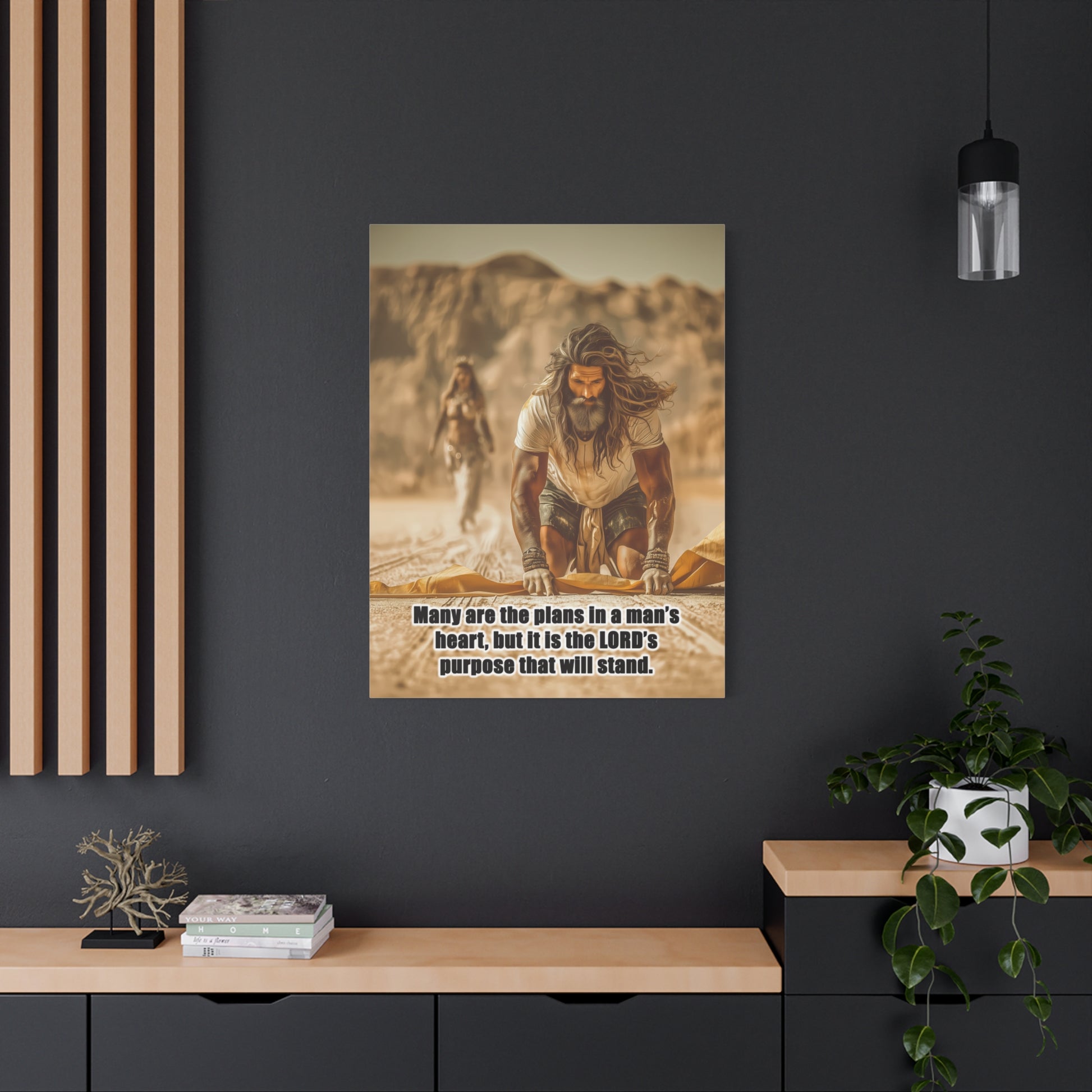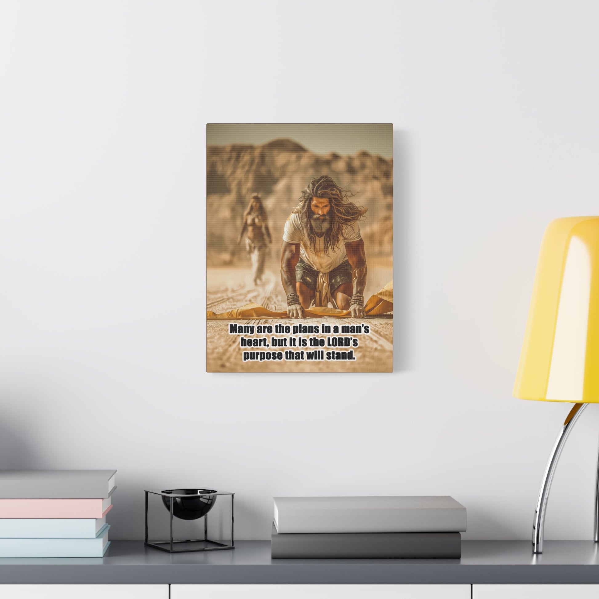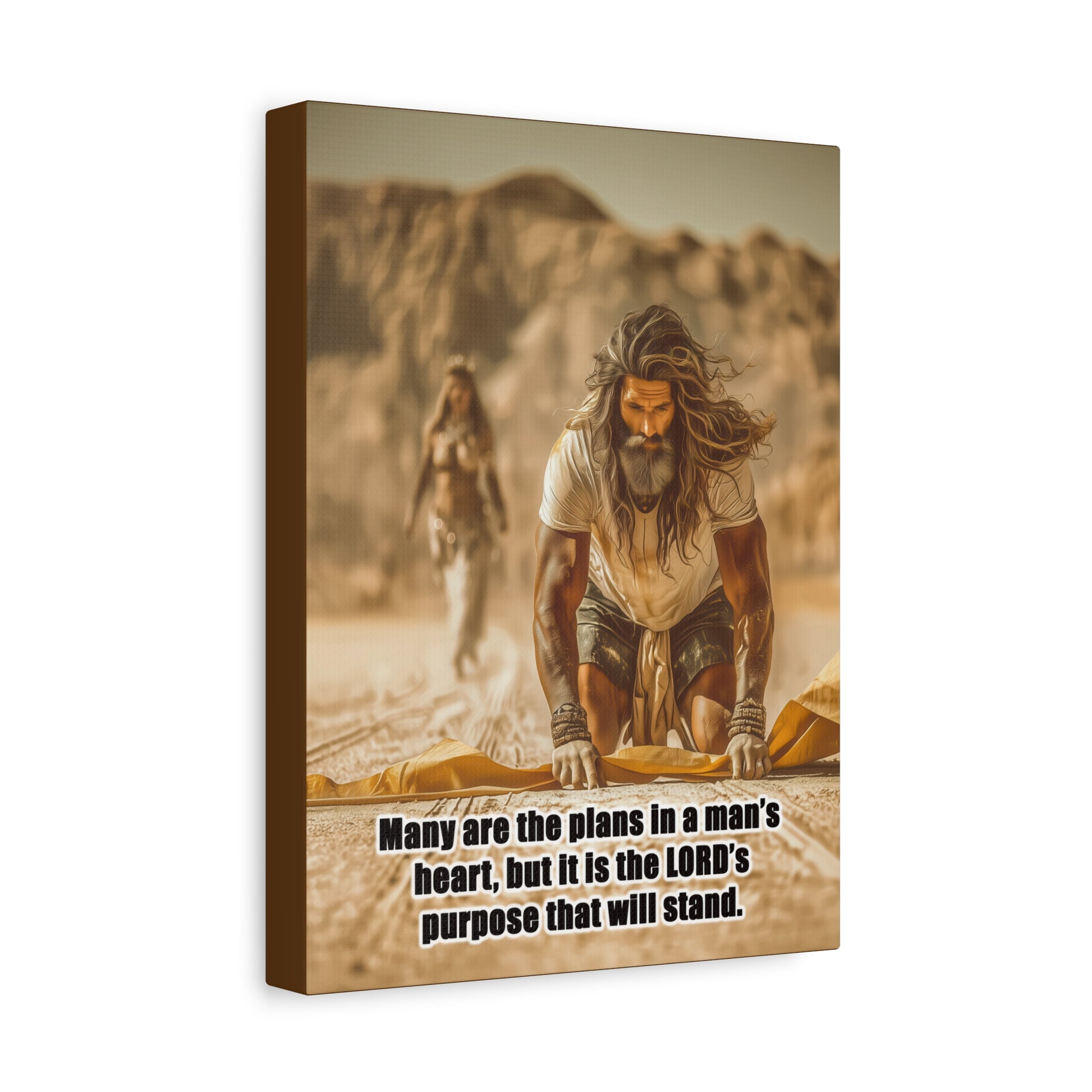 Introducing a stunning Matte Canvas that adds depth and meaning to any space. Bible Quote Proverbs 19:21. This piece captures a moment of reflection and purpose for Prophet Elijah, when he was victorious against the prophets of Baal, and Jezebel sent Elijah a letter threatening his life, and Elijah became afraid and fled. This canvas resonates with individuals seeking motivation and spiritual encouragement. Unique Christian Gift idea.