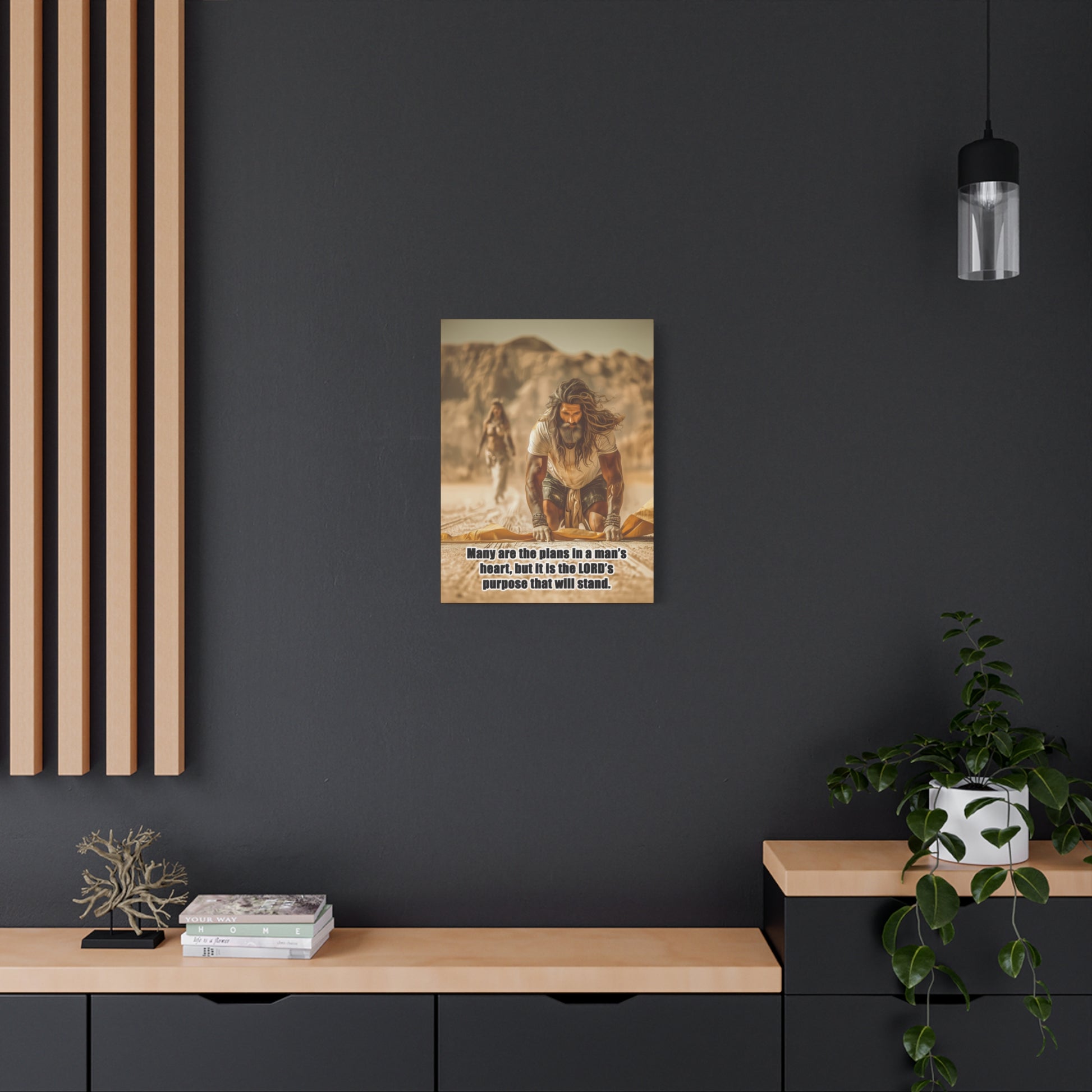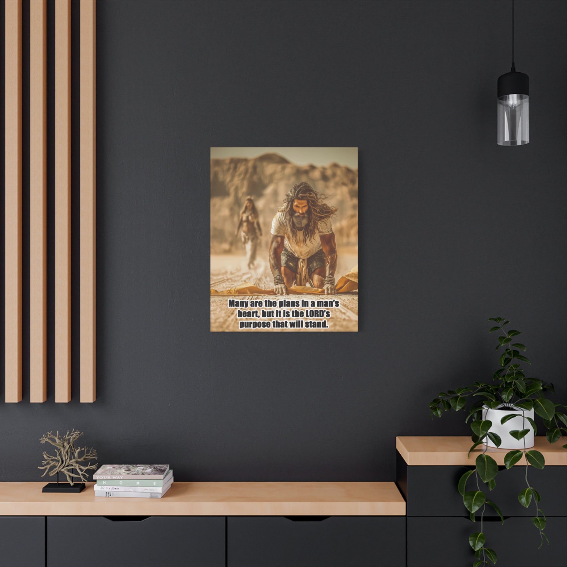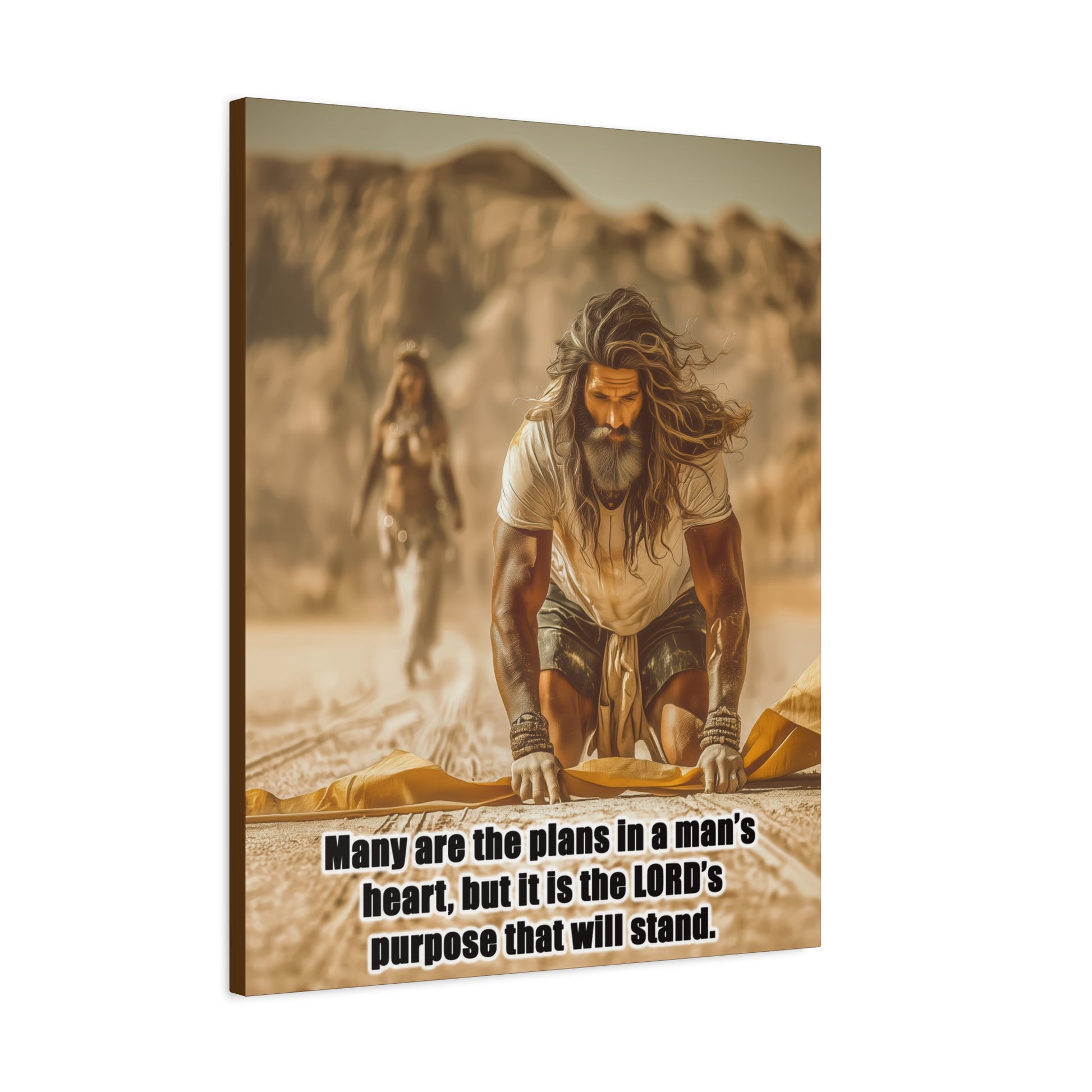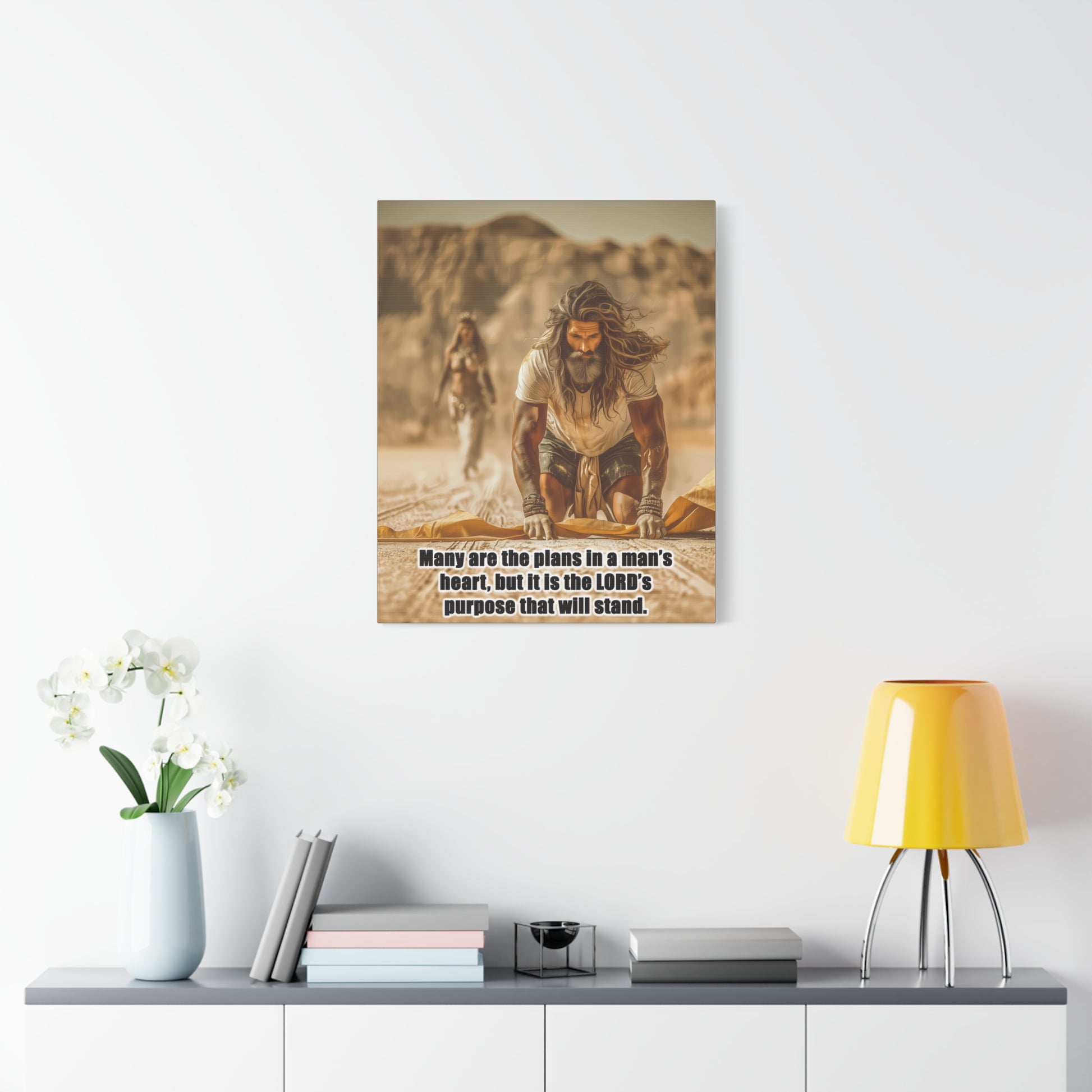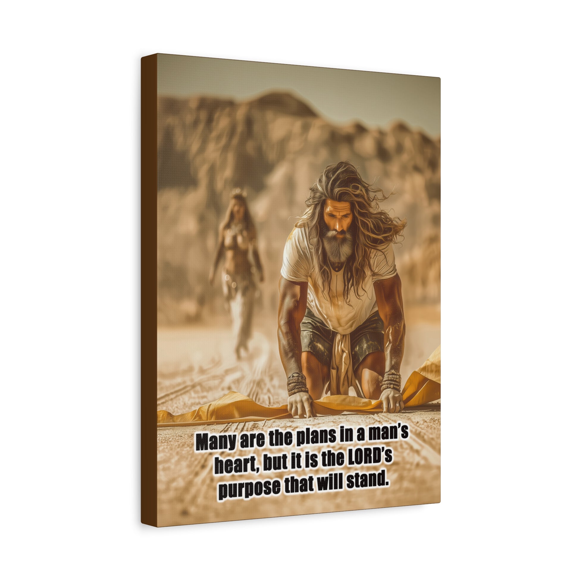Introducing a stunning Matte Canvas that adds depth and meaning to any space. Bible Quote Proverbs 19:21. This piece captures a moment of reflection and purpose for Prophet Elijah, when he was victorious against the prophets of Baal, and Jezebel sent Elijah a letter threatening his life, and Elijah became afraid and fled. This canvas resonates with individuals seeking motivation and spiritual encouragement. Unique Christian Gift idea.