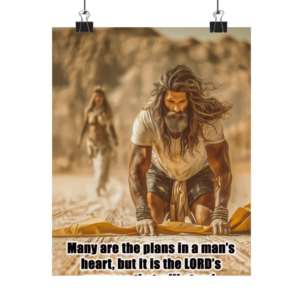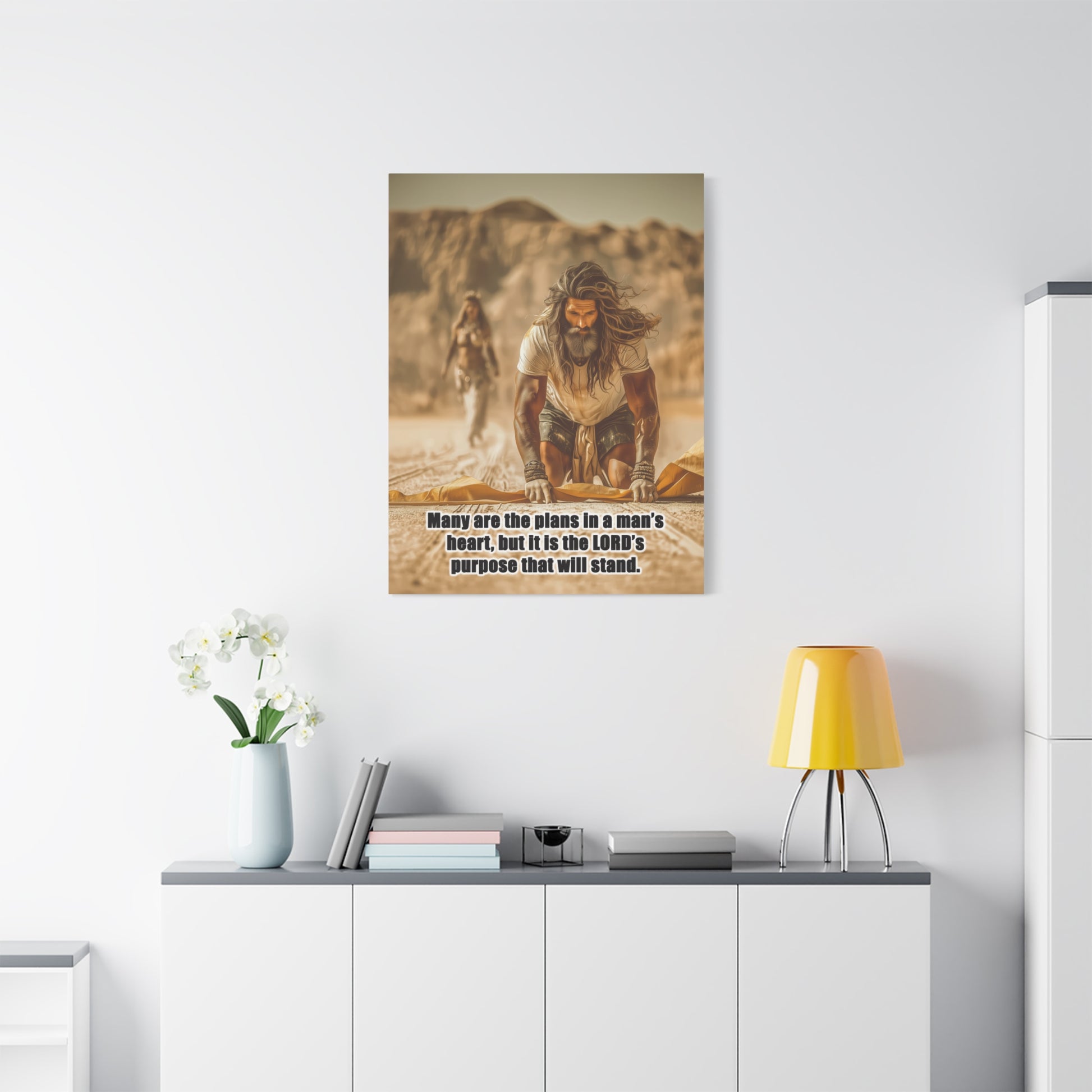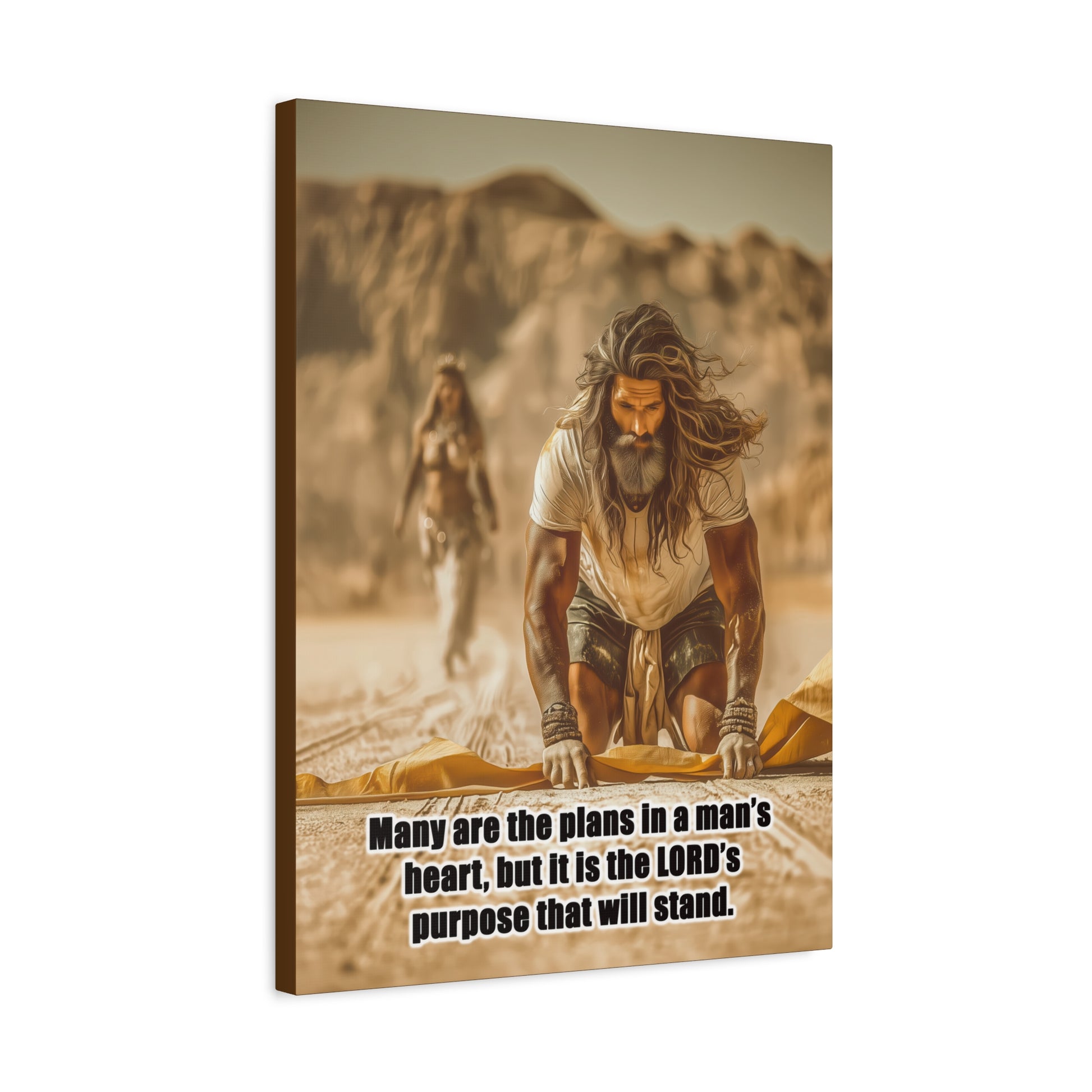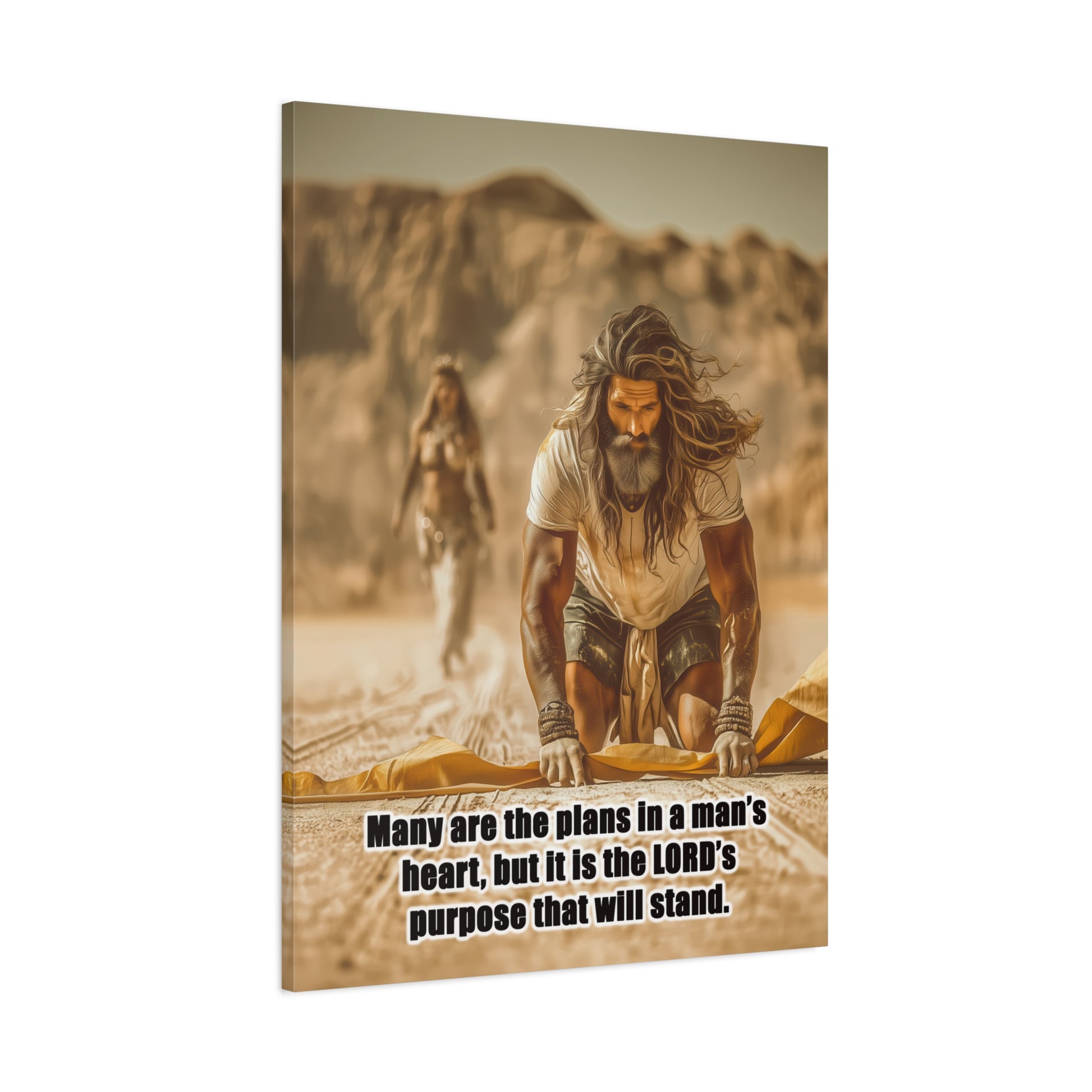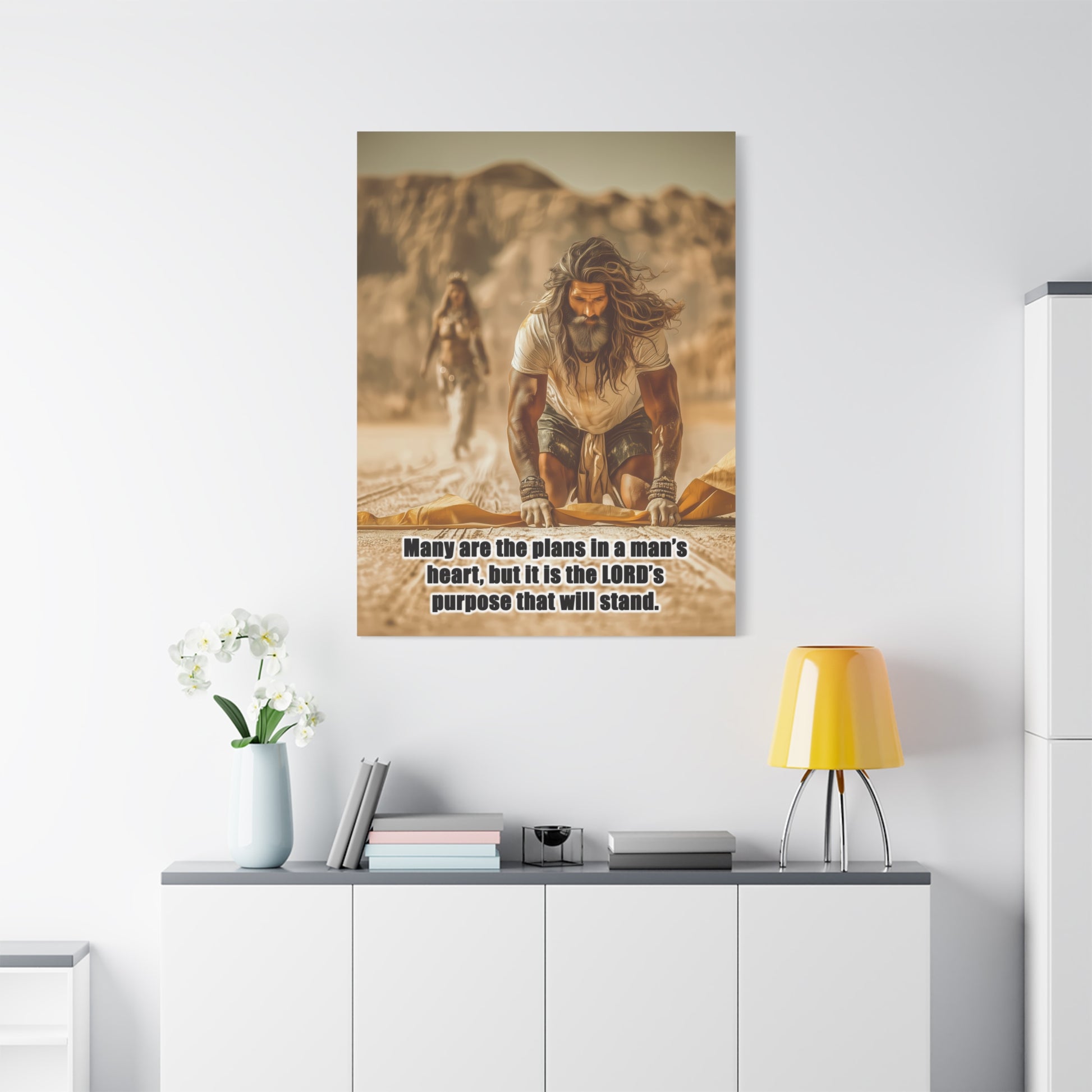 Introducing a stunning Matte Canvas that adds depth and meaning to any space. Bible Quote Proverbs 19:21. This piece captures a moment of reflection and purpose for Prophet Elijah, when he was victorious against the prophets of Baal, and Jezebel sent Elijah a letter threatening his life, and Elijah became afraid and fled. This canvas resonates with individuals seeking motivation and spiritual encouragement. Unique Christian Gift idea.