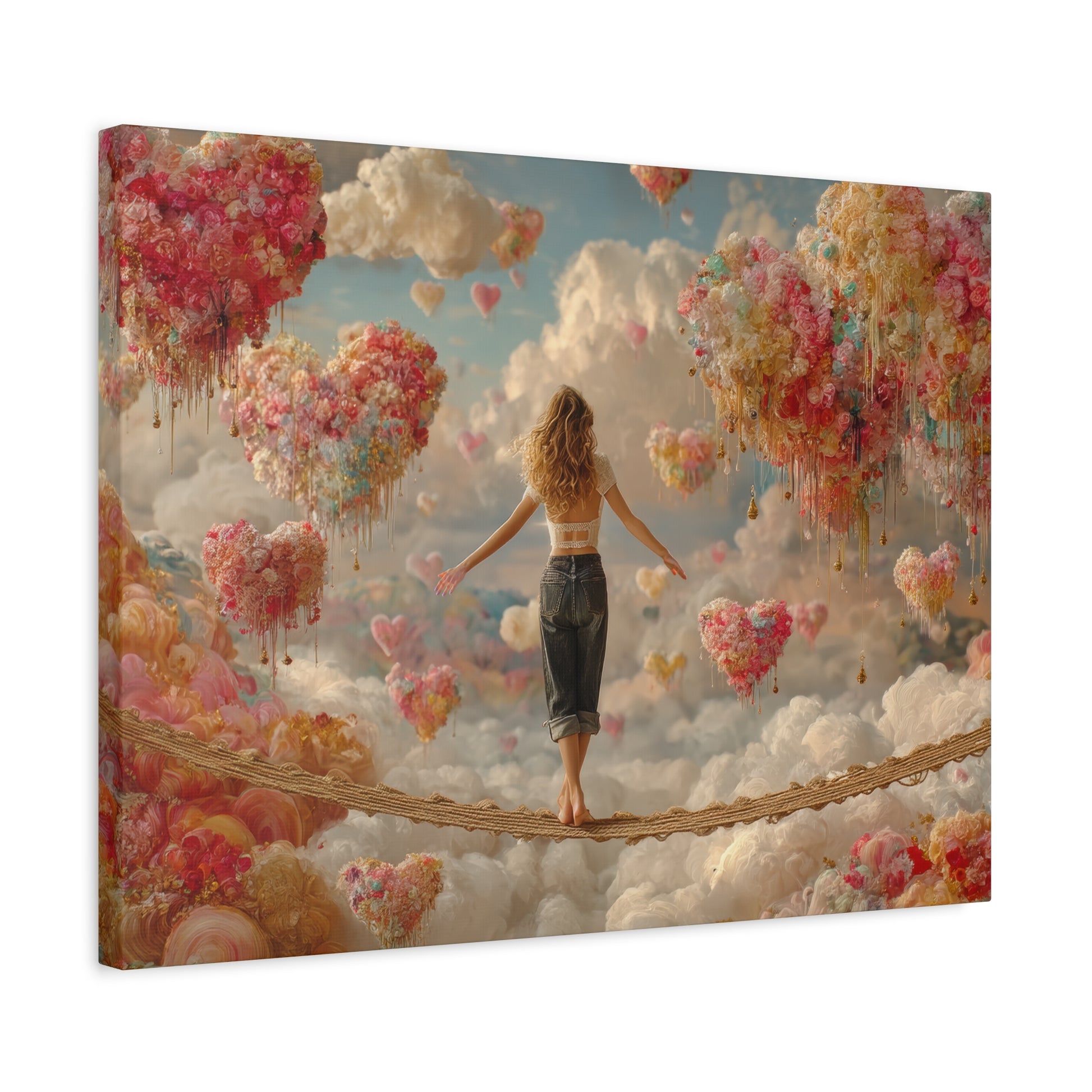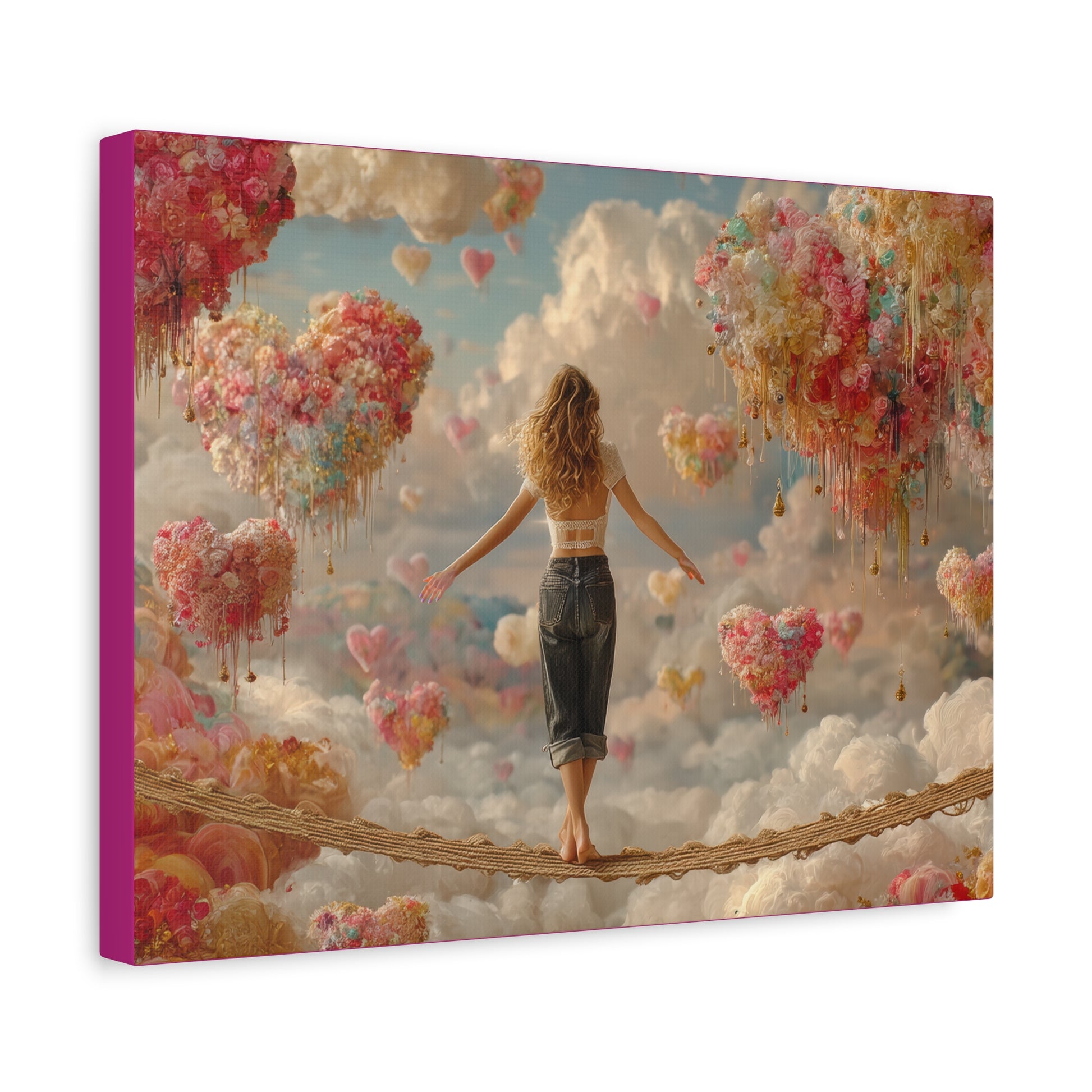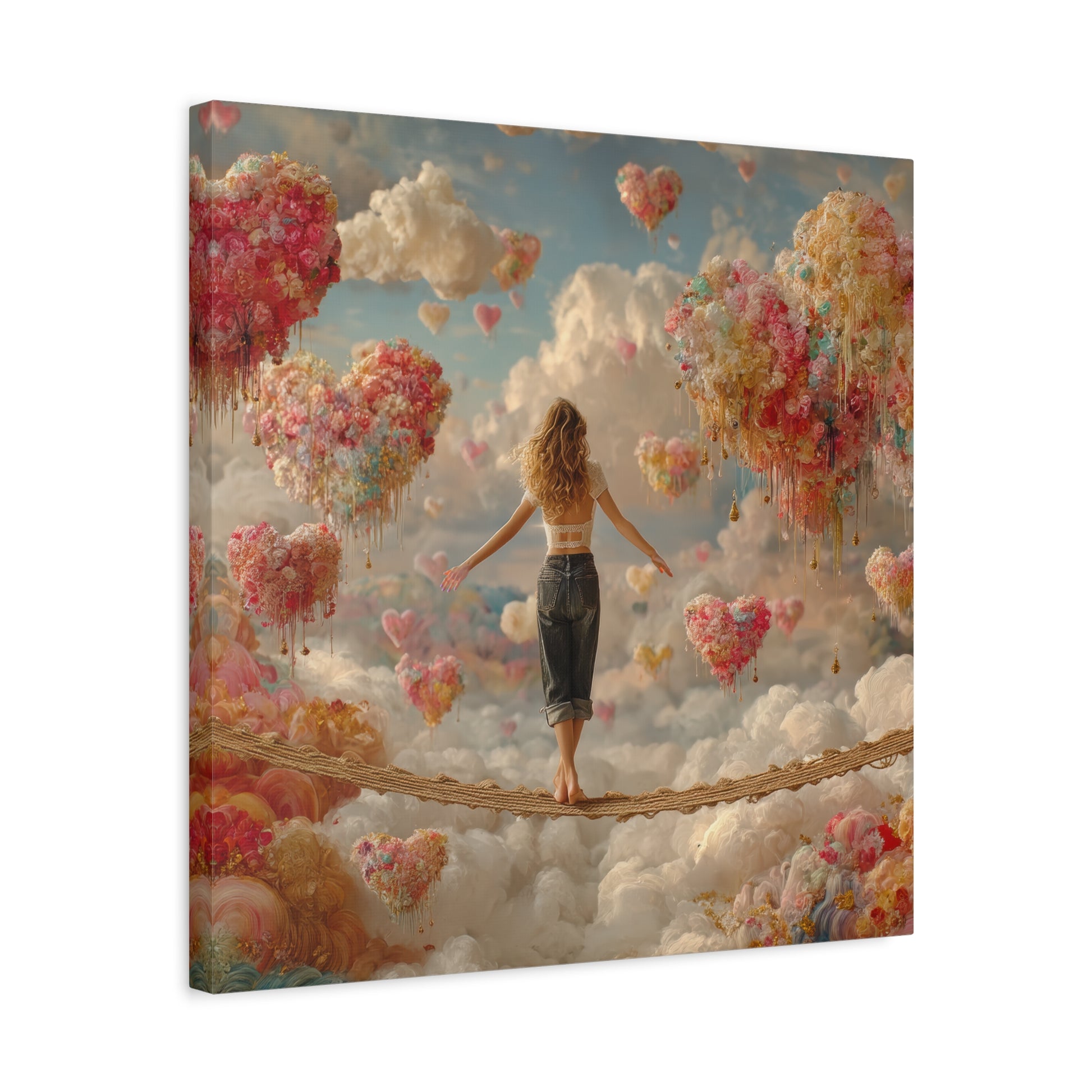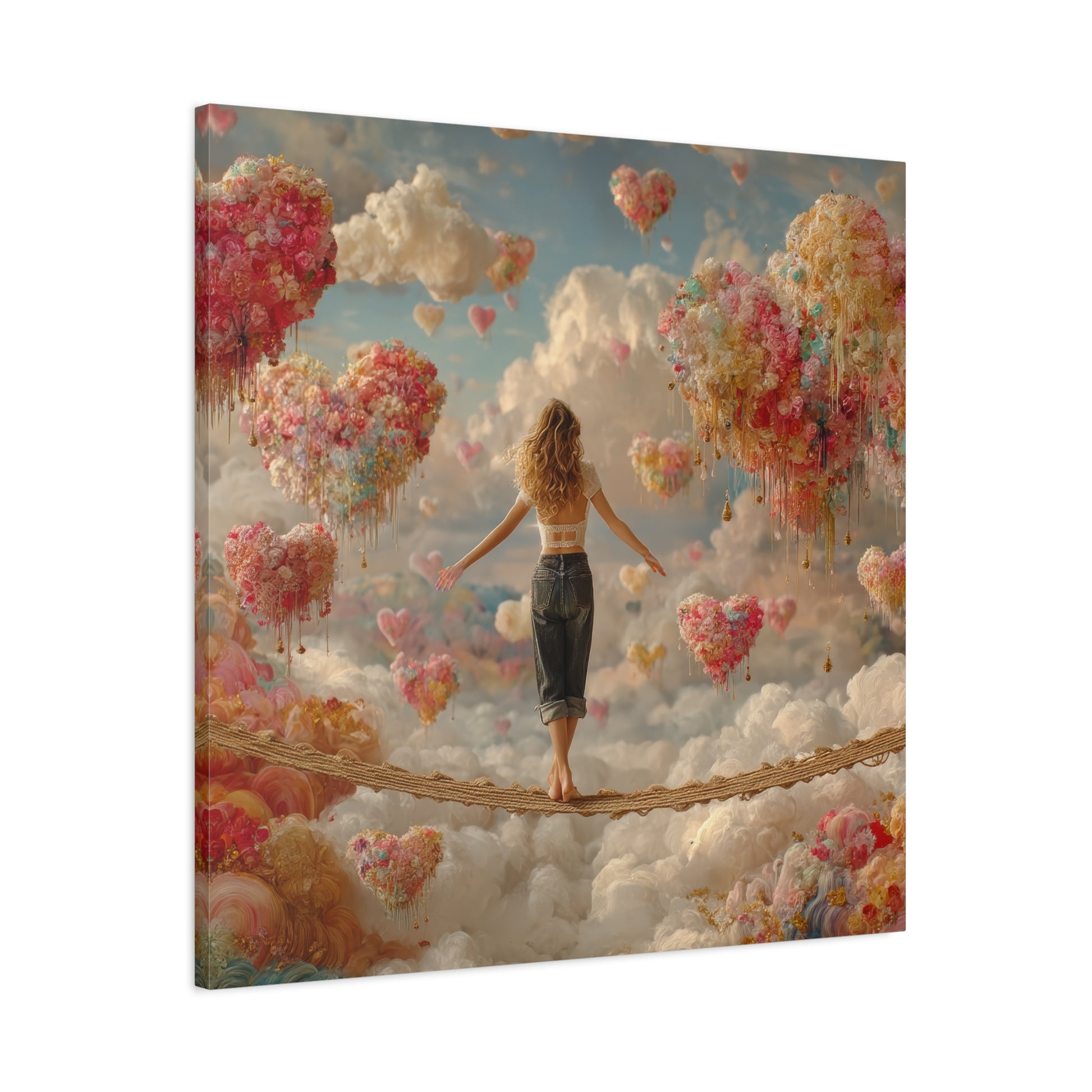 Add a touch of whimsy and warmth to your living space with this stunning canvas print, titled "There is No Fear in Love." This artwork features a dreamy scene filled with floating hearts and clouds, this canvas invites feelings of joy and serenity. Perfect any room, and a picture kids will love. Ideal for anyone who appreciates art that uplifts the spirit, this product resonates especially well with dreamers, romantics, and anyone looking to add a splash of color to their decor. It's a wonderful gift for special occasions such as anniversaries, Valentine's Day, or simply to celebrate love and friendship in daily life.