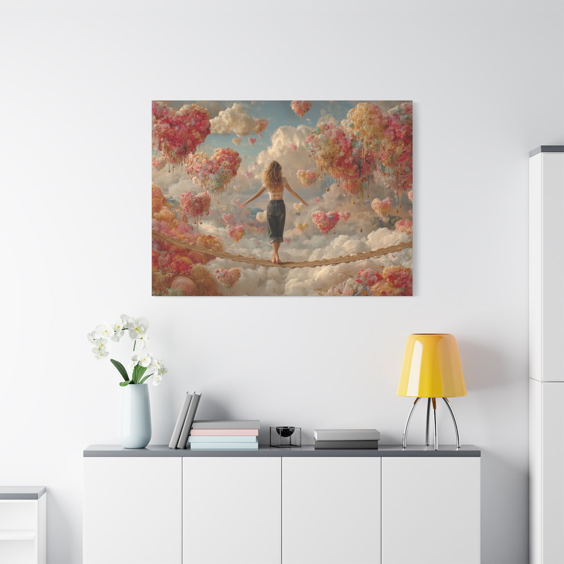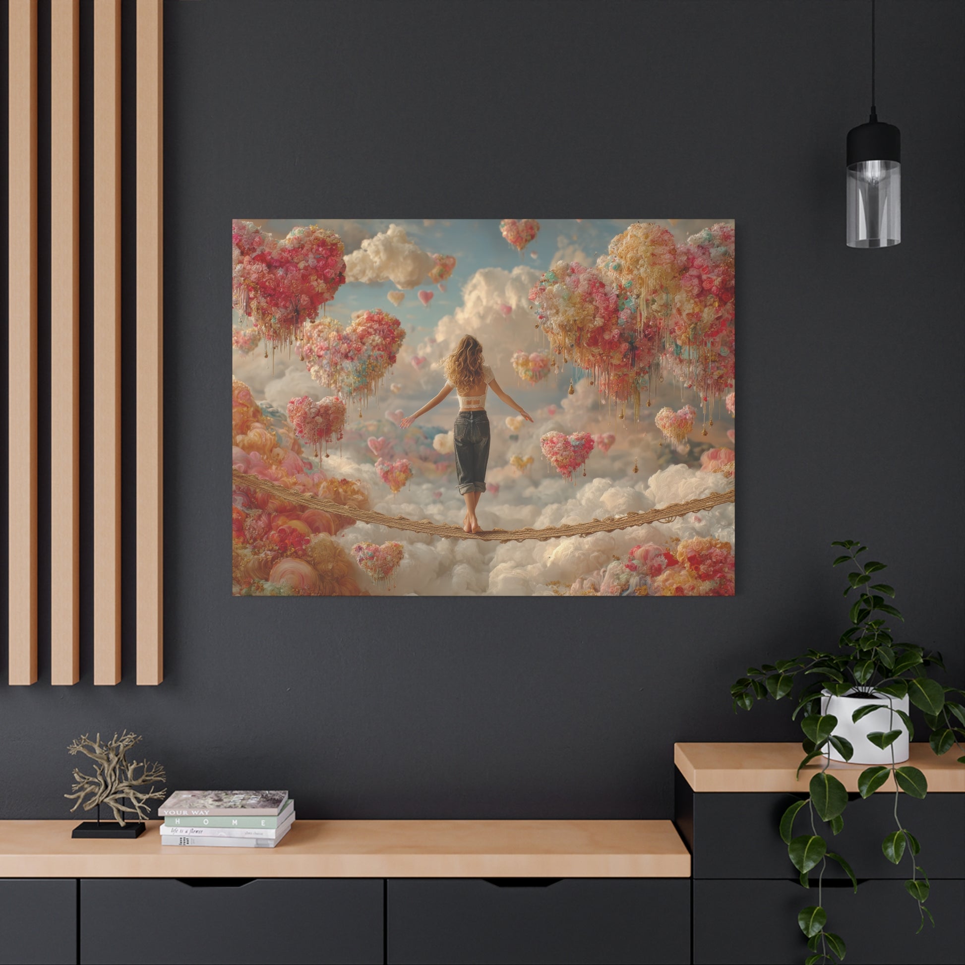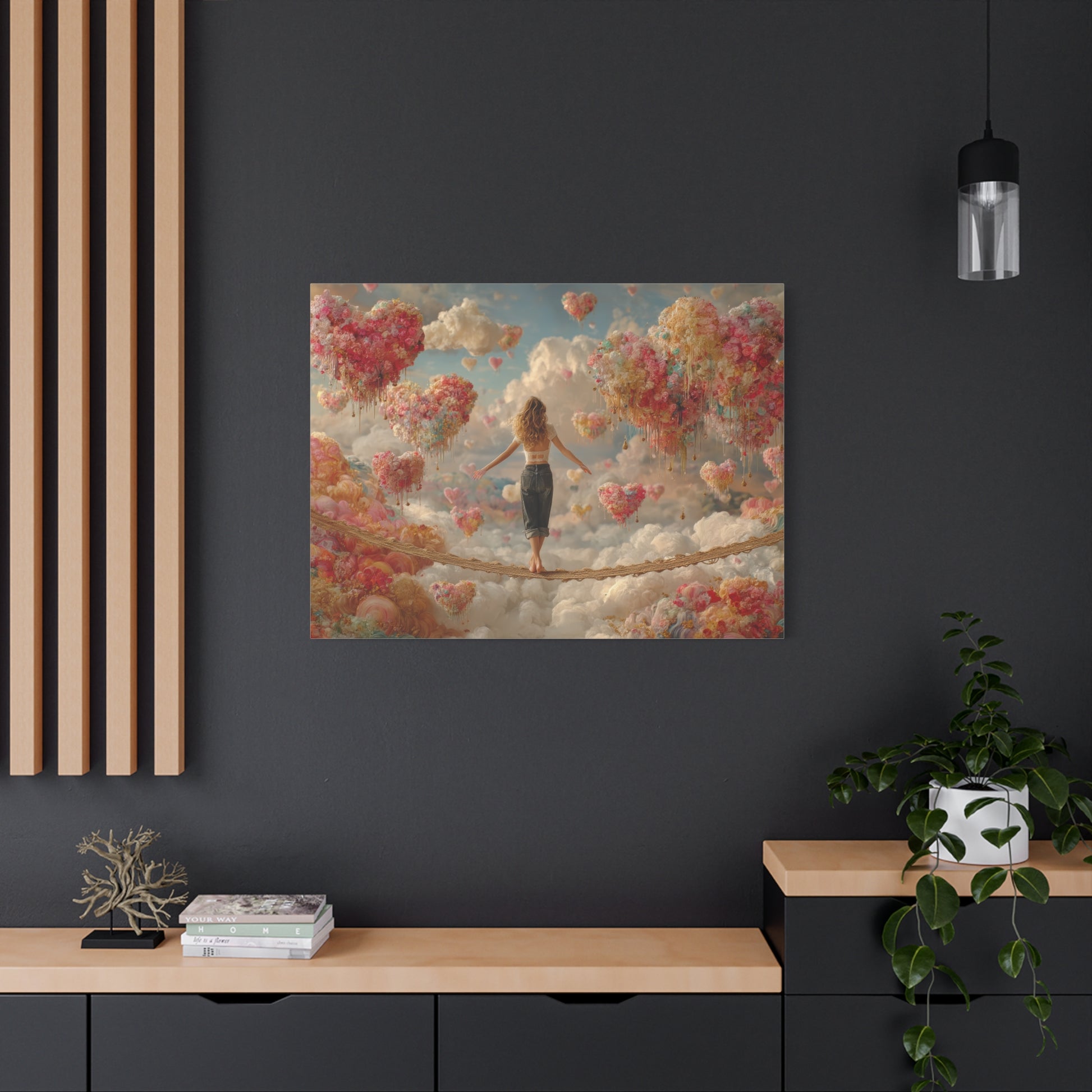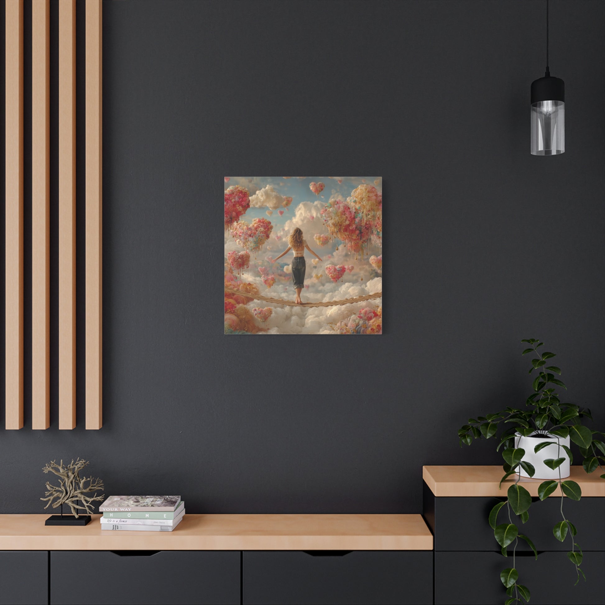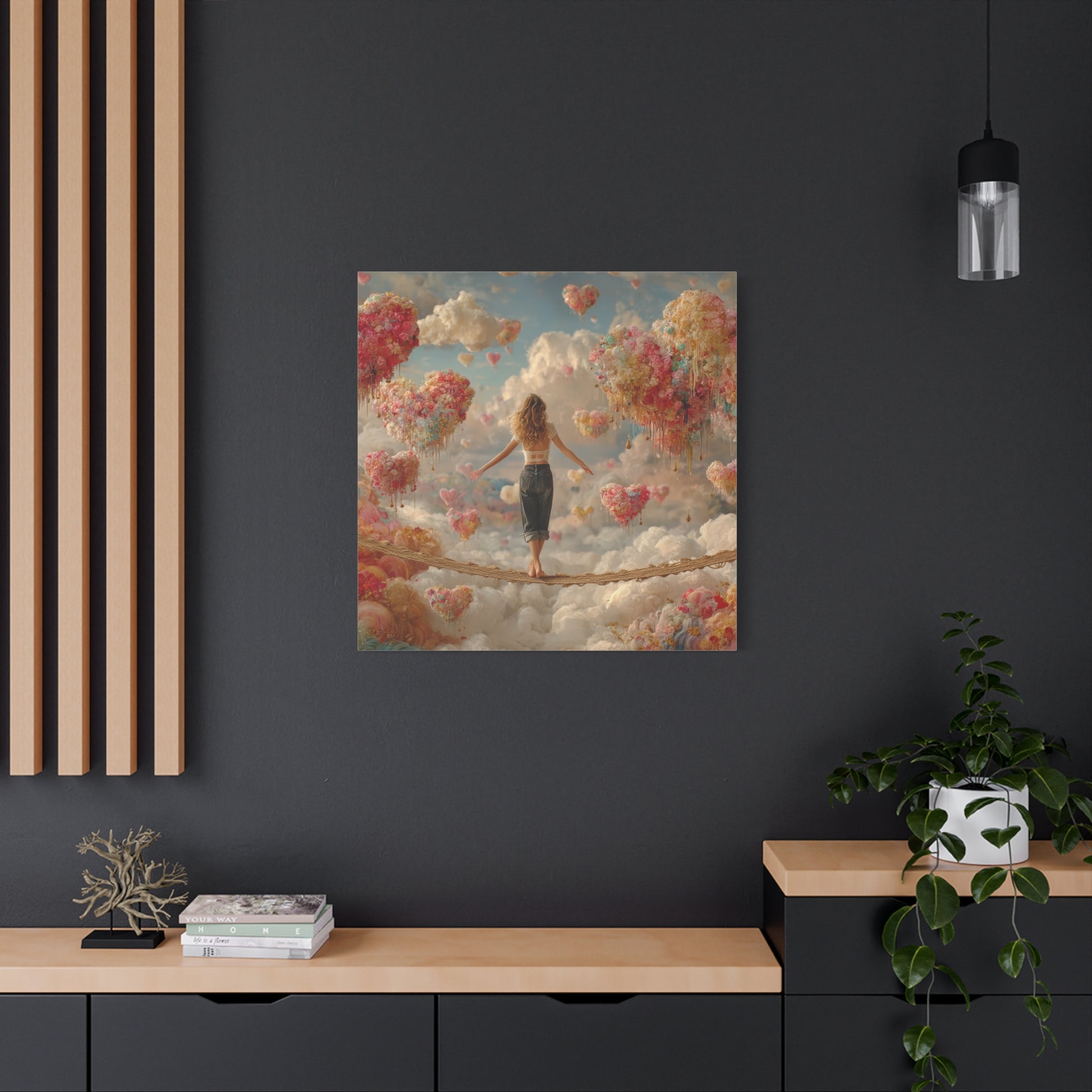 Add a touch of whimsy and warmth to your living space with this stunning canvas print, titled "There is No Fear in Love." This artwork features a dreamy scene filled with floating hearts and clouds, this canvas invites feelings of joy and serenity. Perfect any room, and a picture kids will love. Ideal for anyone who appreciates art that uplifts the spirit, this product resonates especially well with dreamers, romantics, and anyone looking to add a splash of color to their decor. It's a wonderful gift for special occasions such as anniversaries, Valentine's Day, or simply to celebrate love and friendship in daily life.