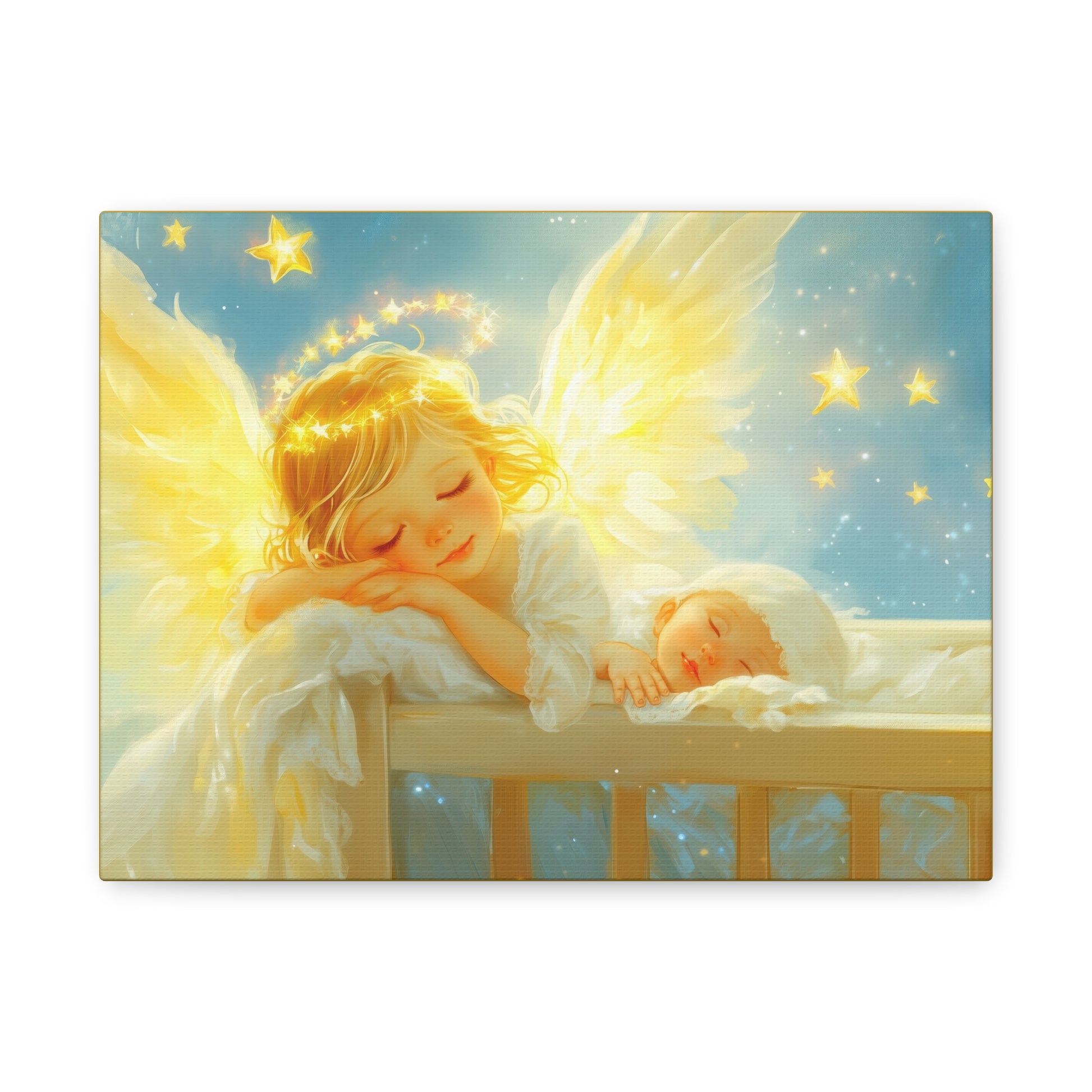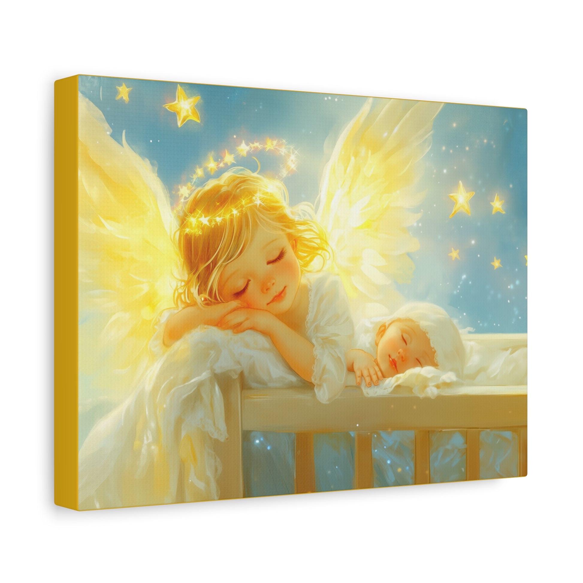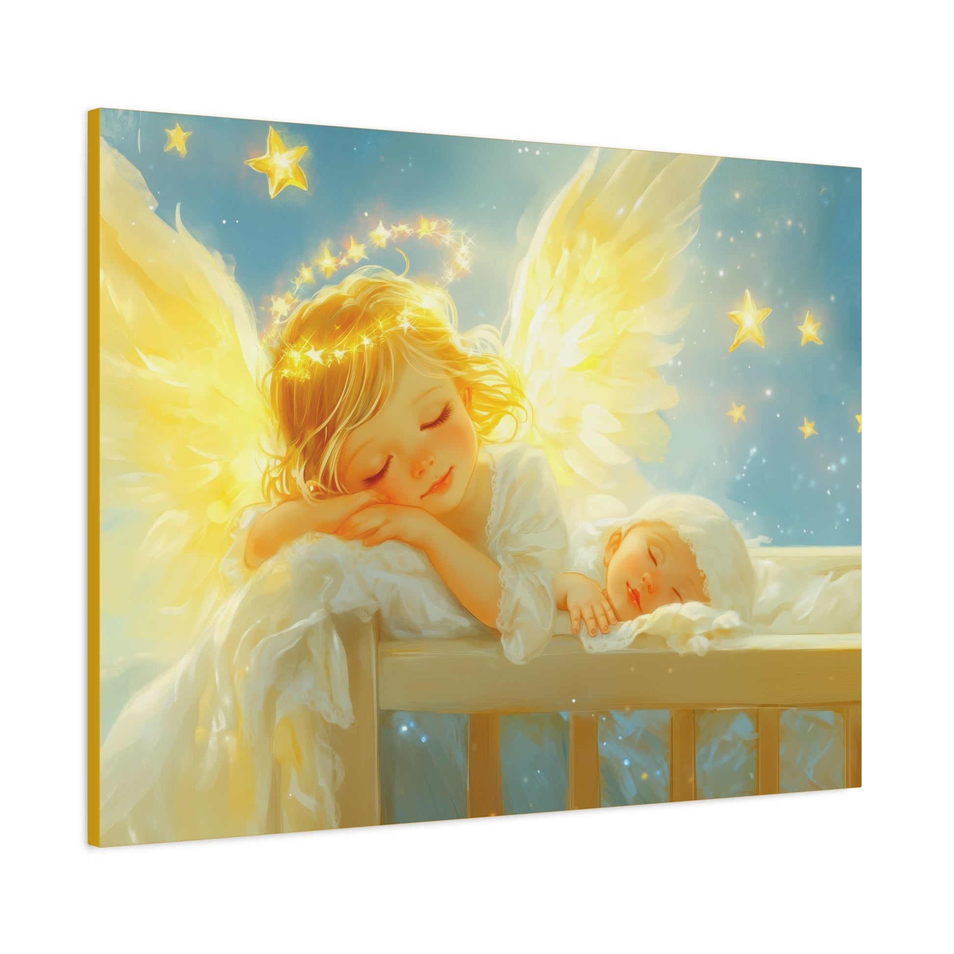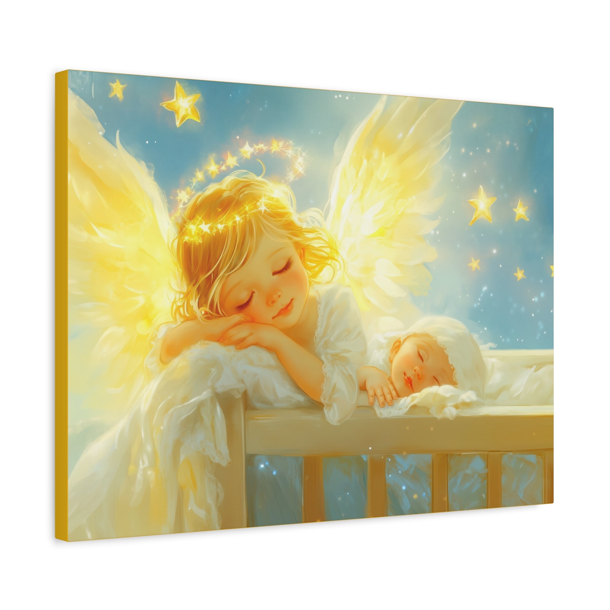 Heavenly Dreams Art - Canvas & Poster Prints, Personalization Available, Baby and Angel Design, Nursery Decor, Guardian Angel Wall Art