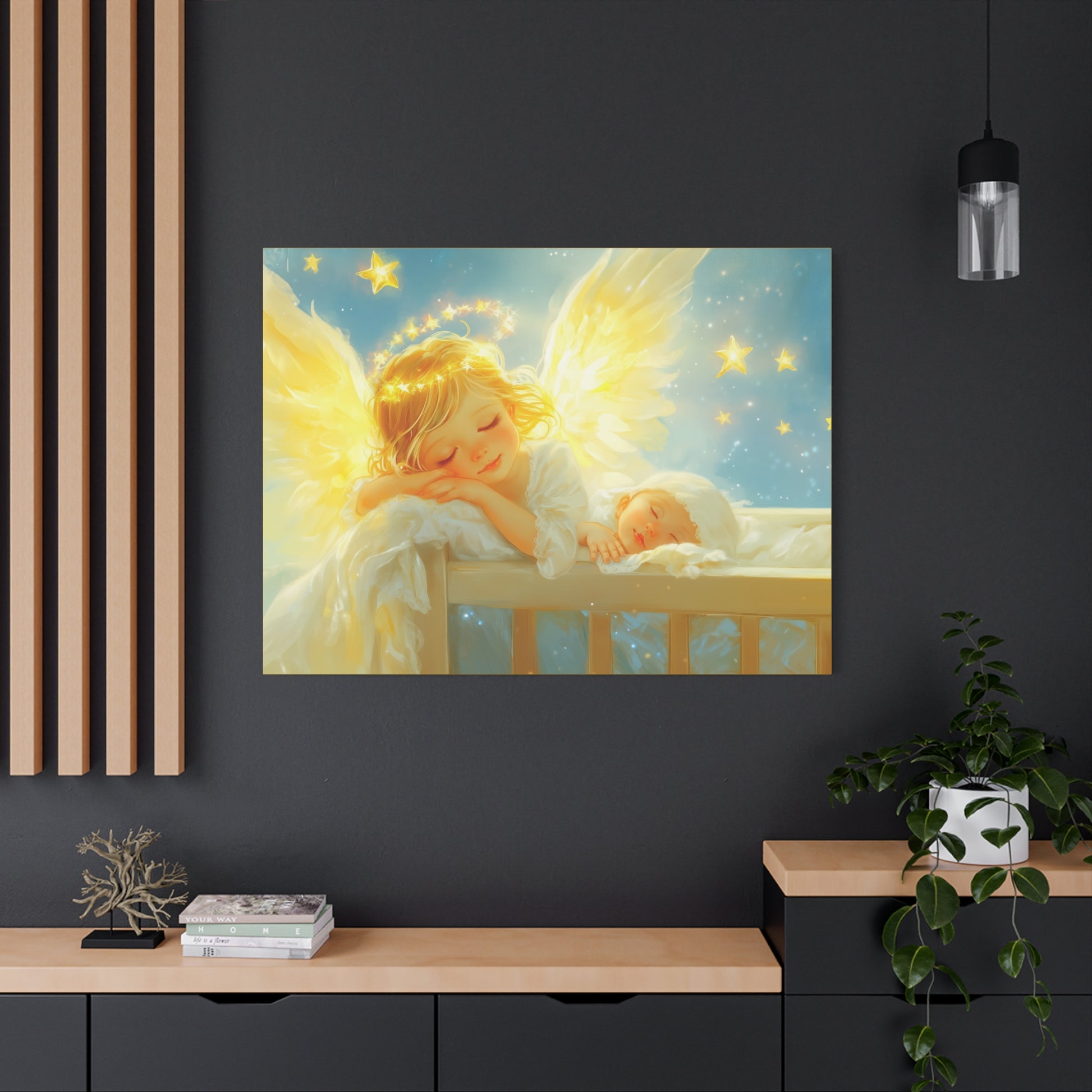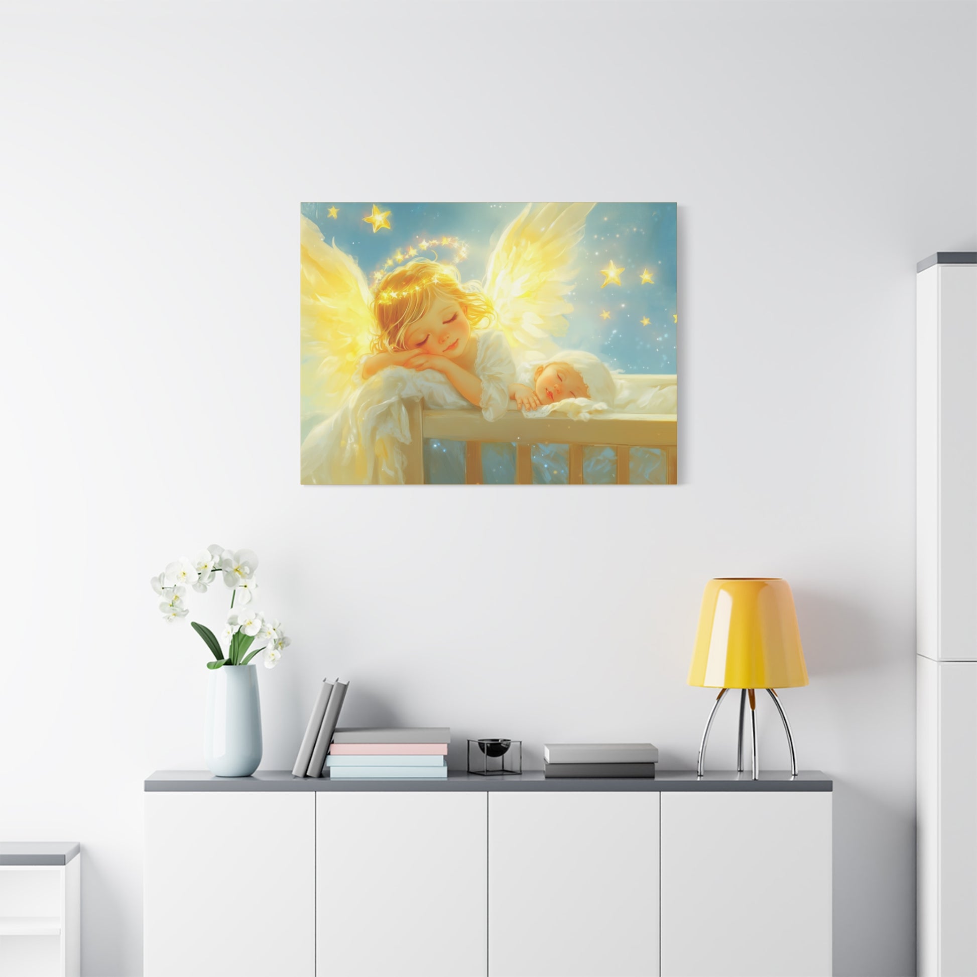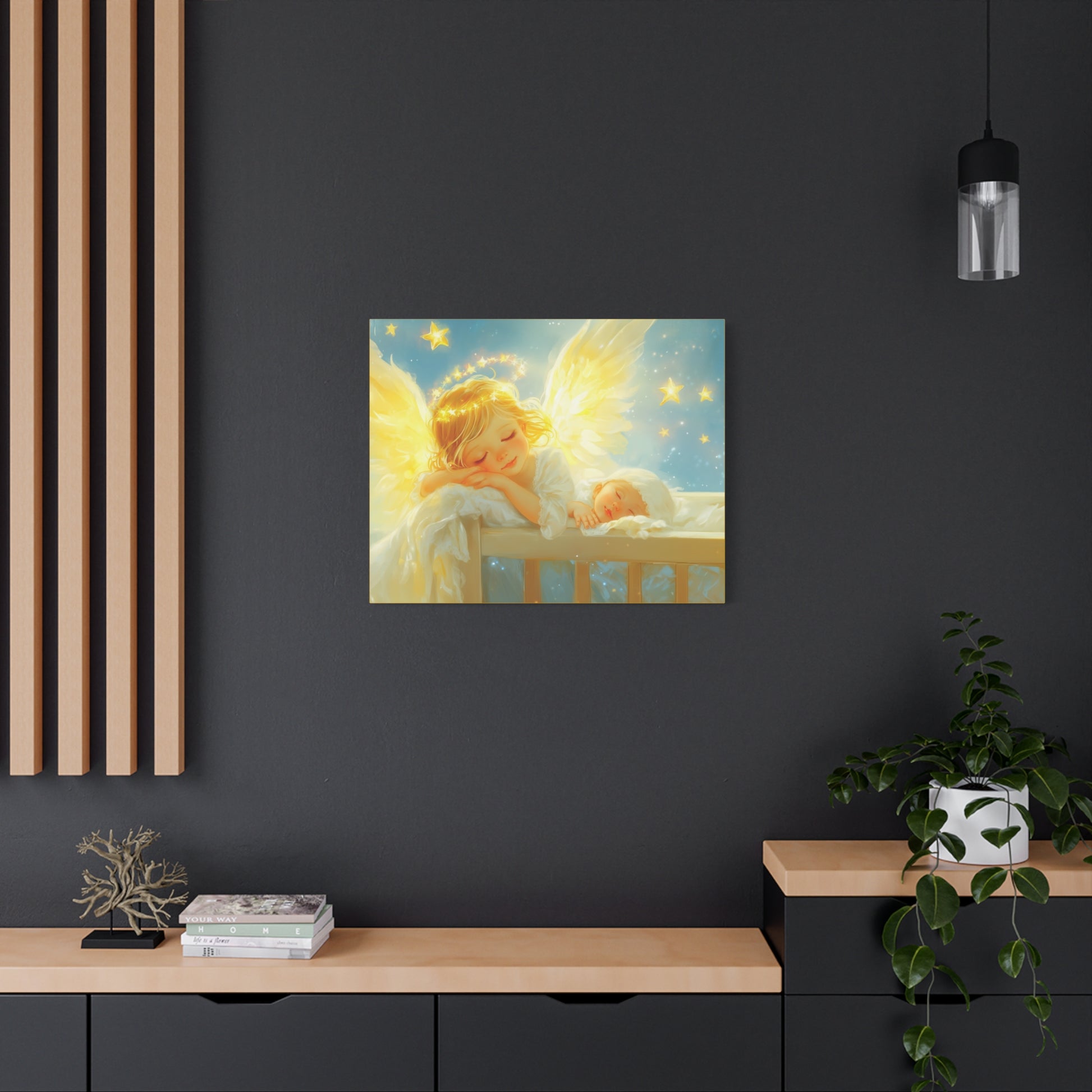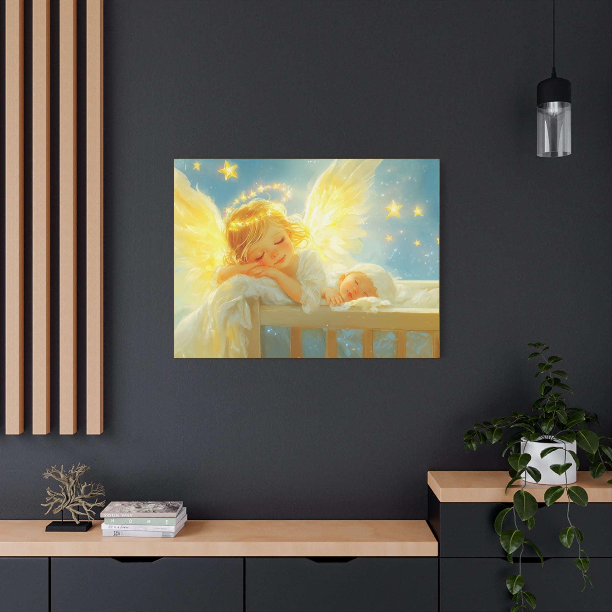 Heavenly Dreams Art - Canvas & Poster Prints, Personalization Available, Baby and Angel Design, Nursery Decor, Guardian Angel Wall Art