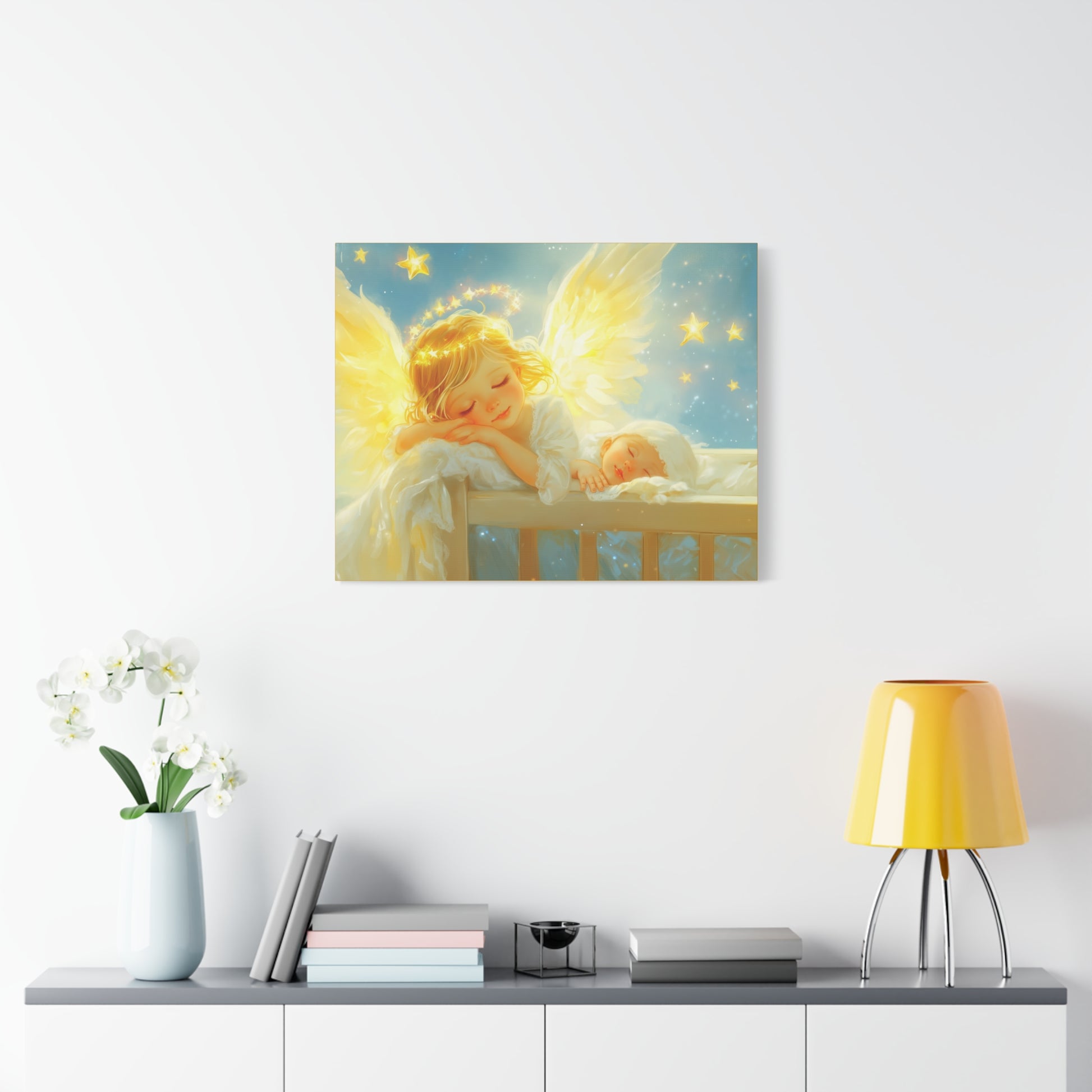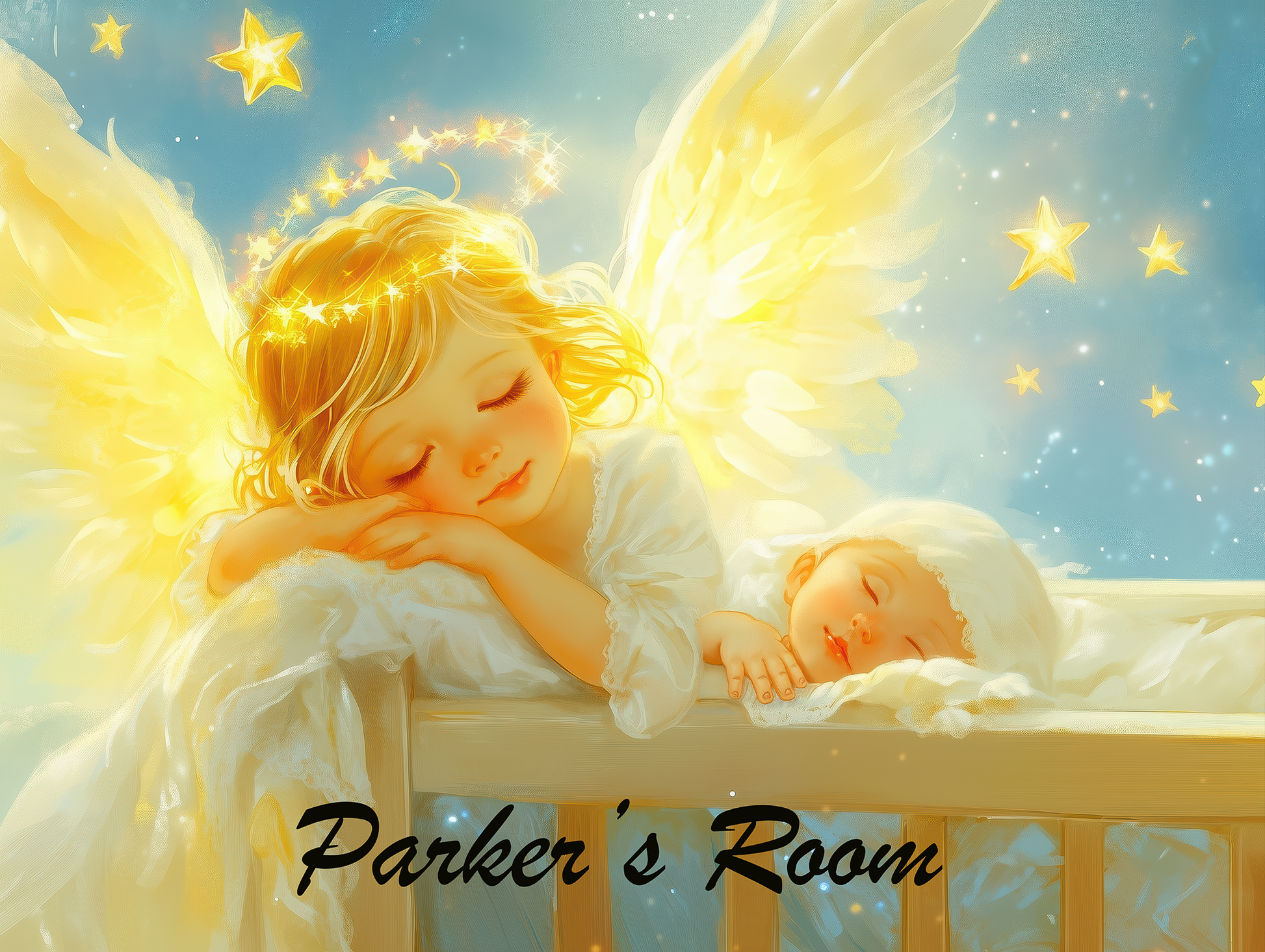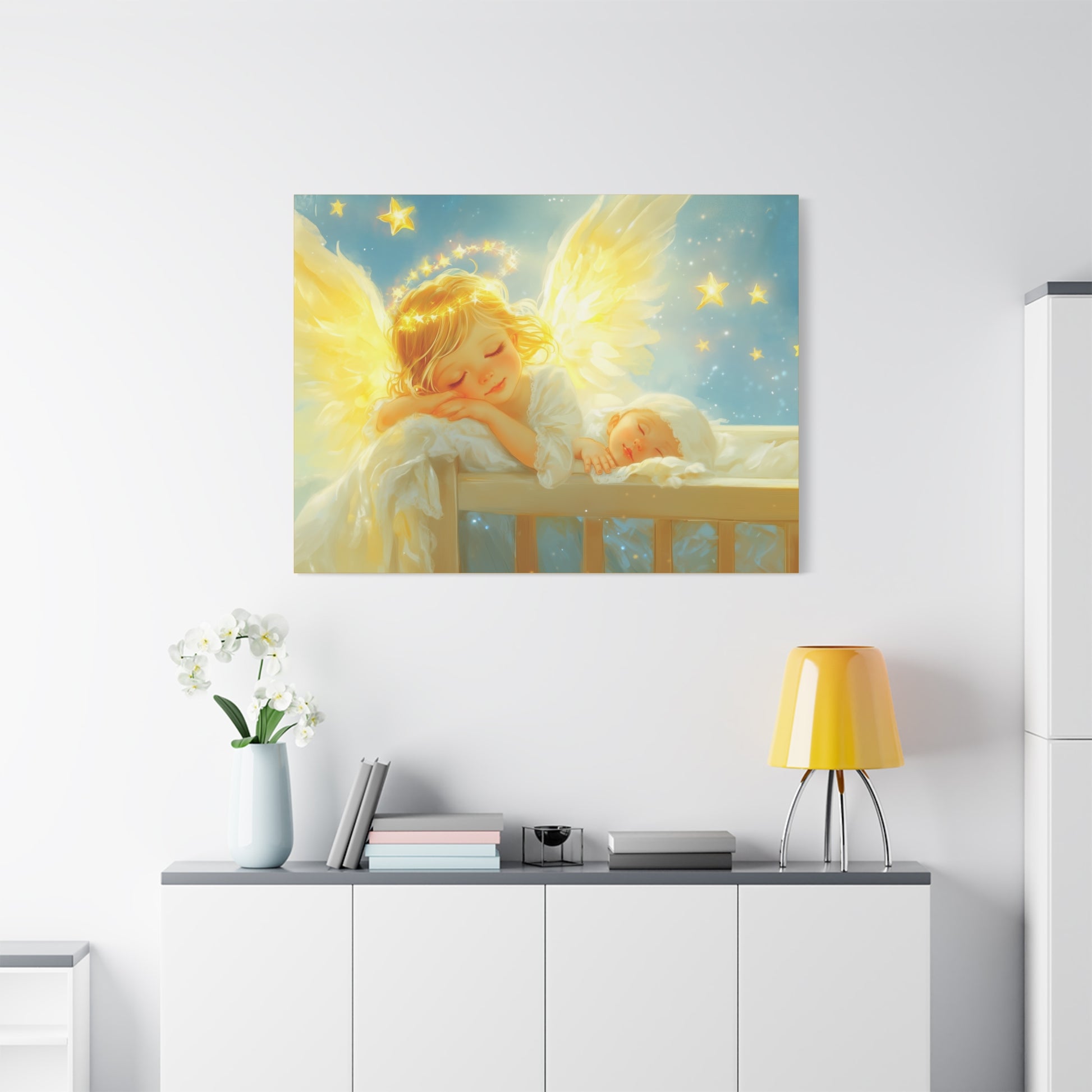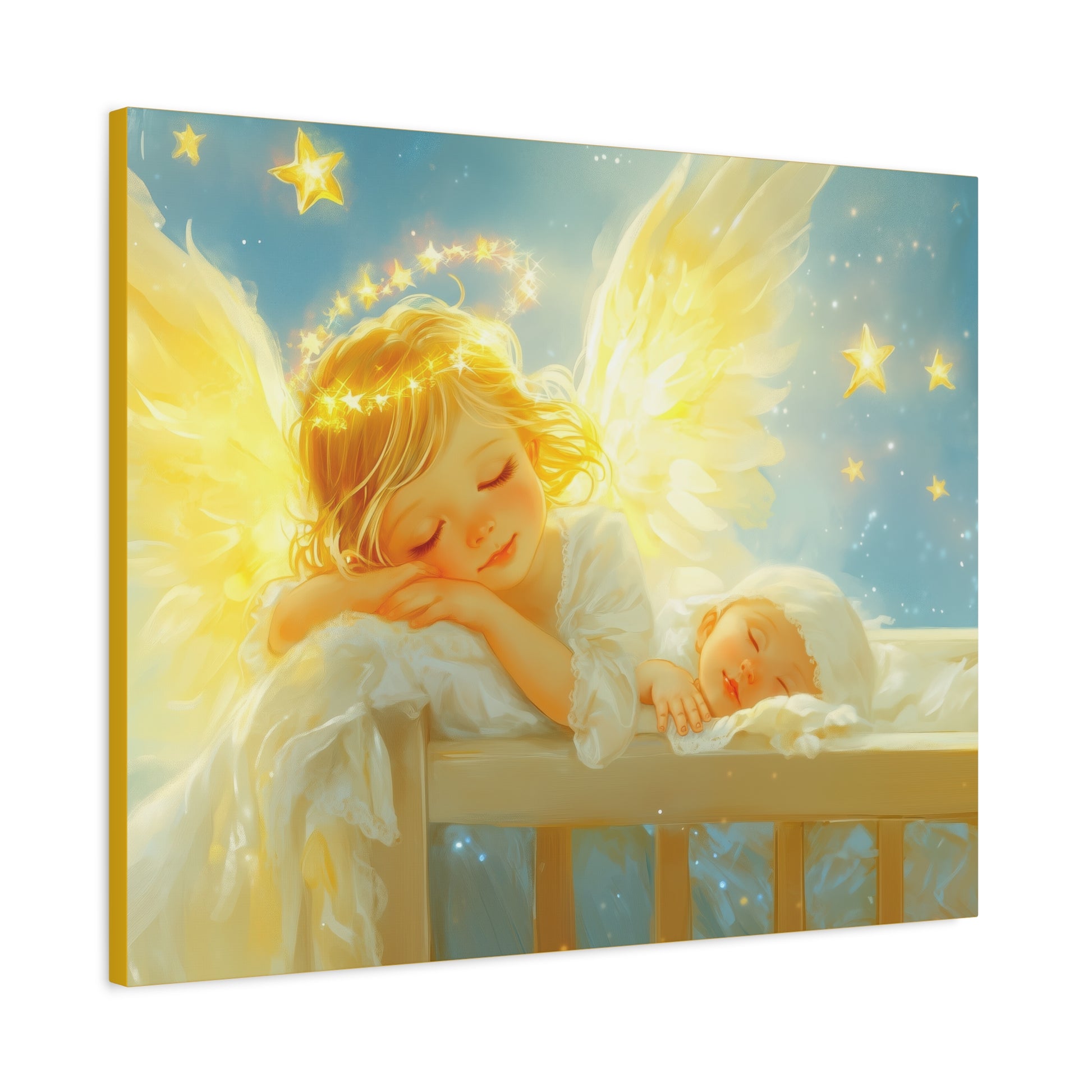 Heavenly Dreams Art - Canvas & Poster Prints, Personalization Available, Baby and Angel Design, Nursery Decor, Guardian Angel Wall Art