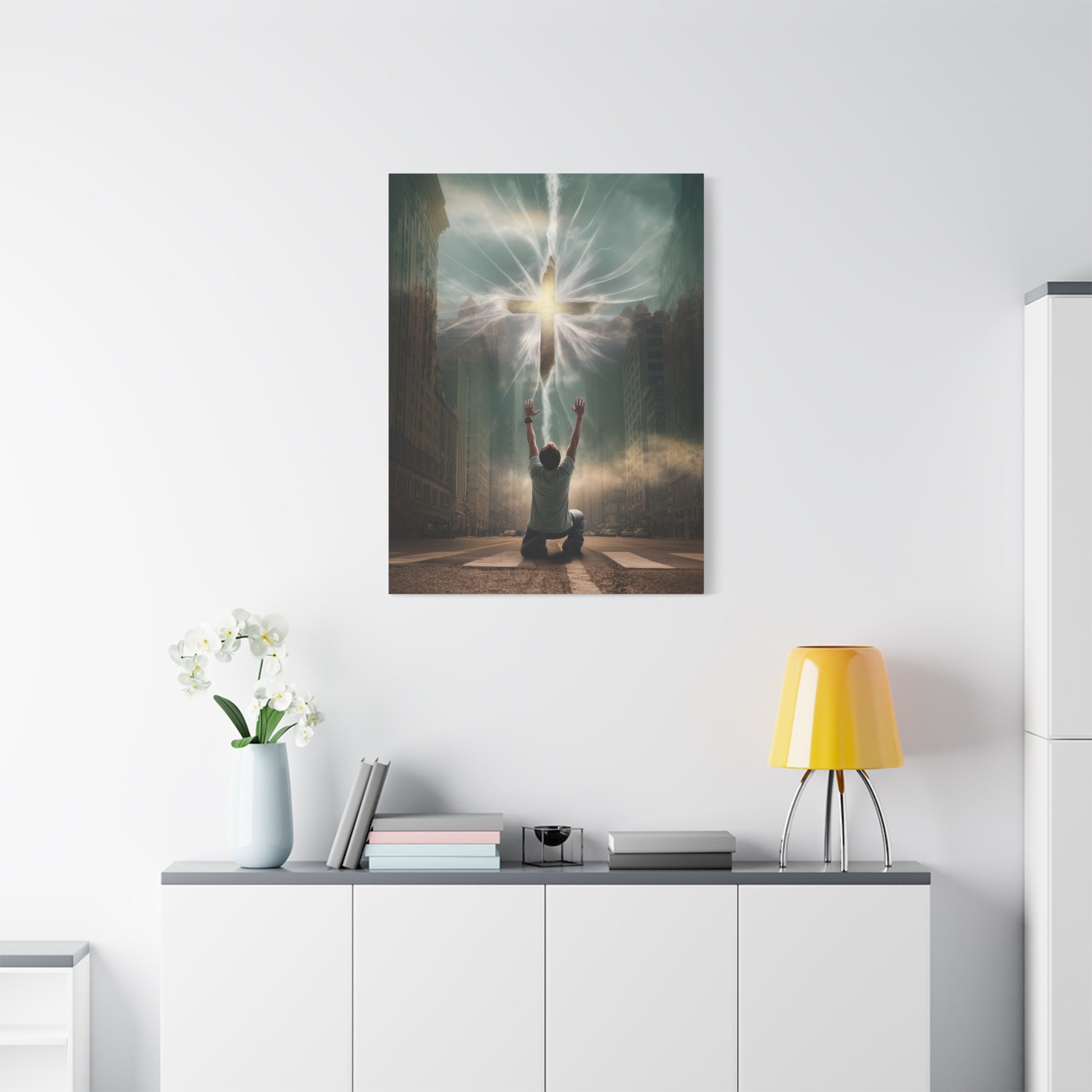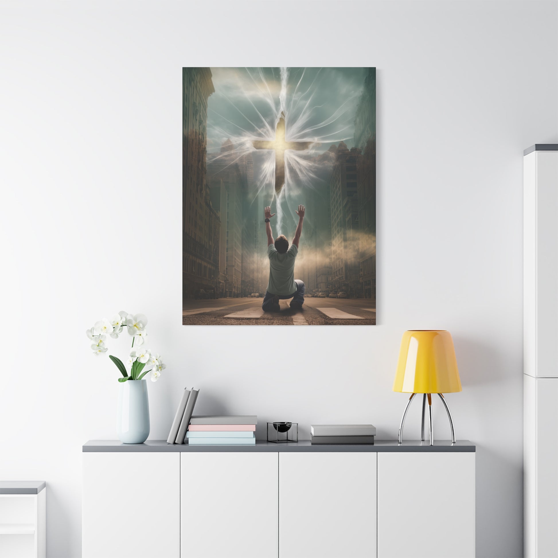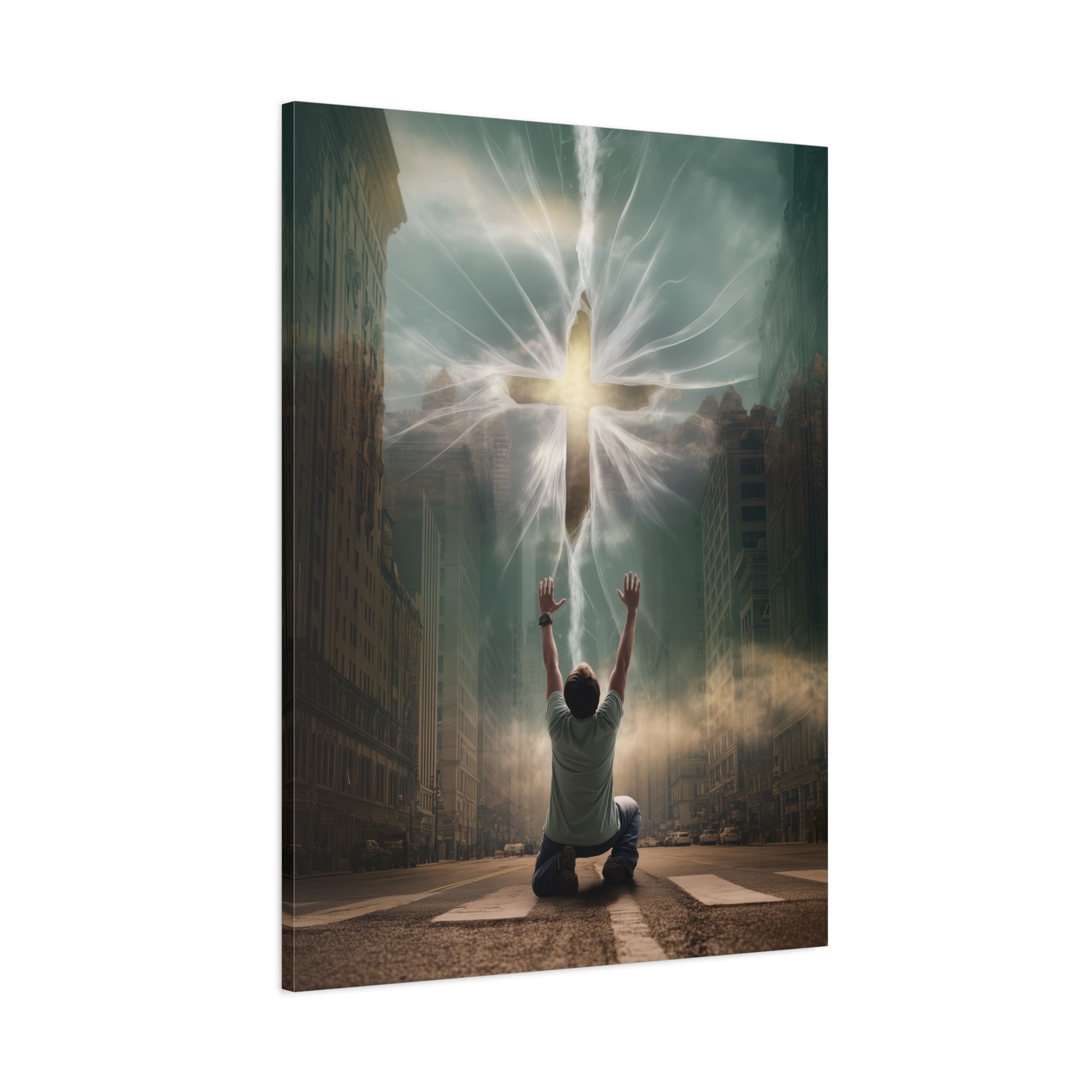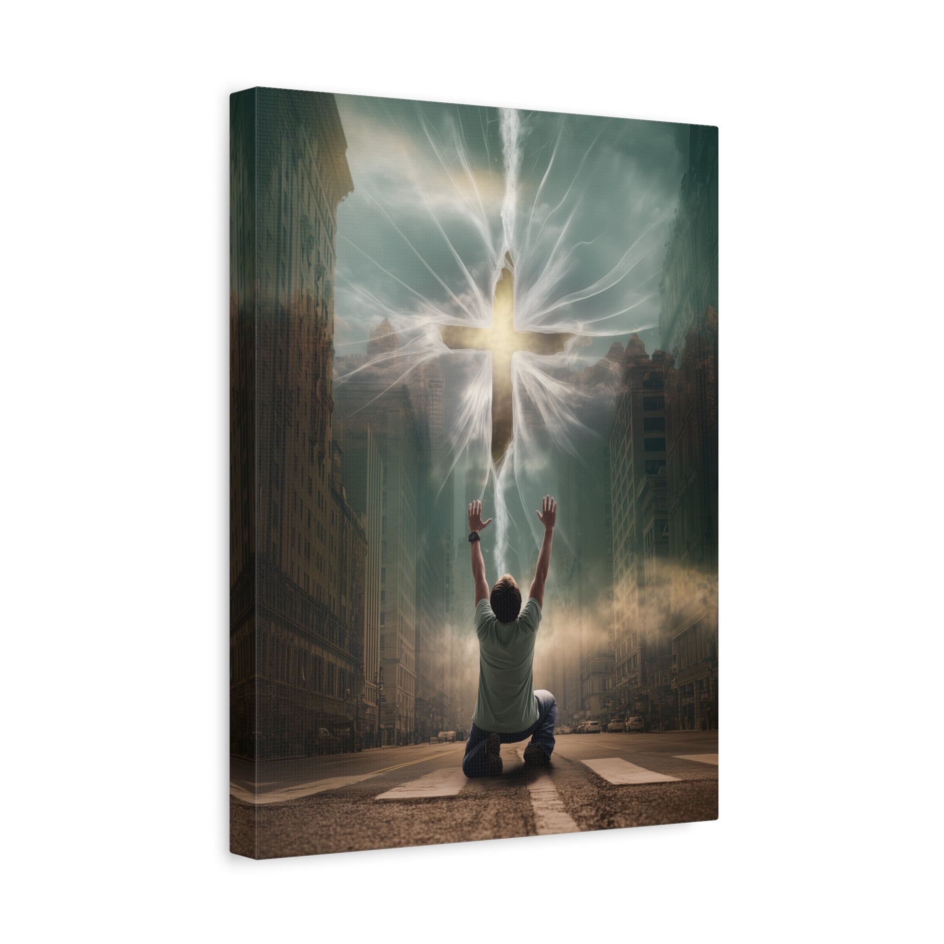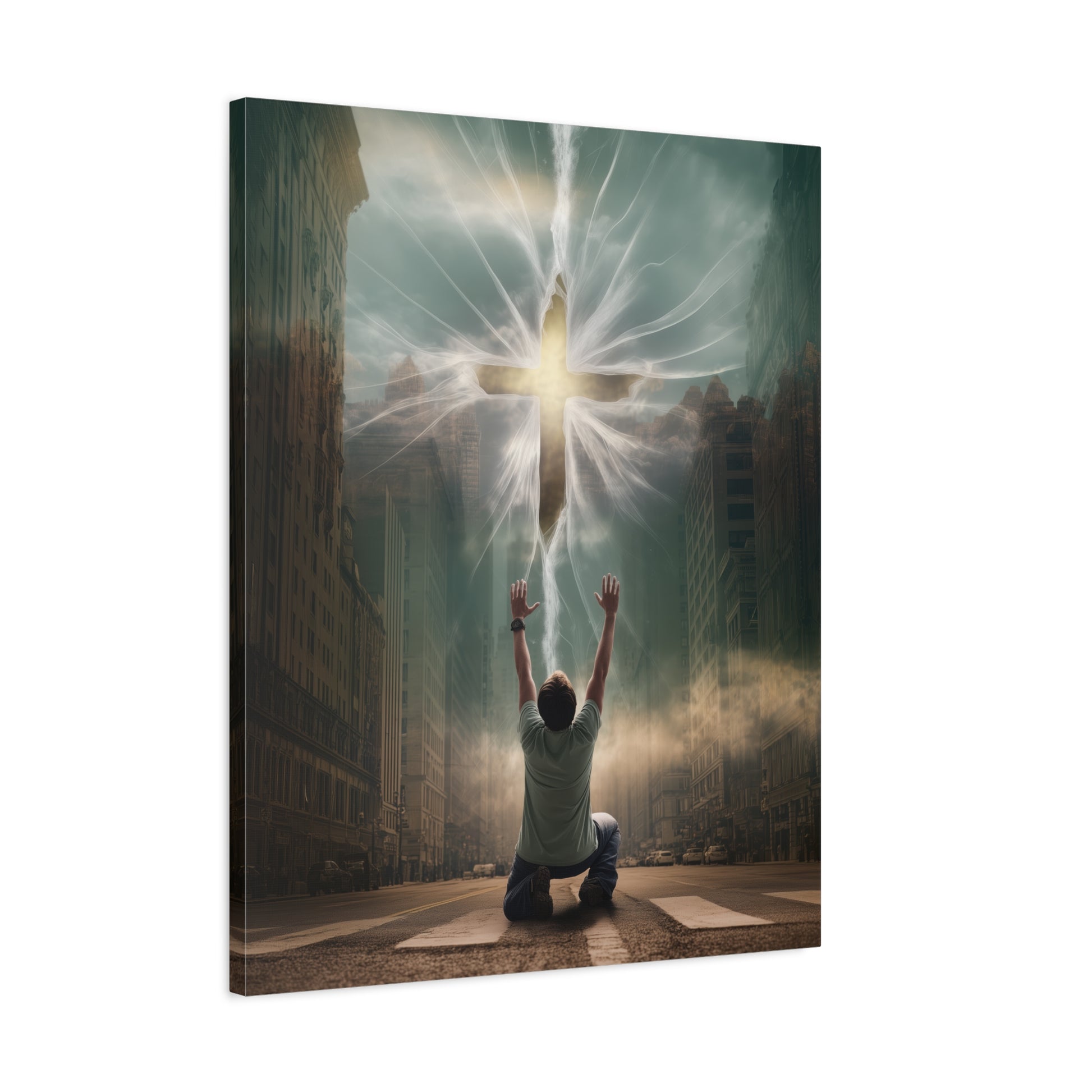 Inspired by Luke 23:44-47 when the God tore the veil of the temple in Jerusalem at the moment of Jesus death. This removed the barrier between God and humanity through Jesus Christ's sacrifice. This canvas invokes powerful imagery, showing a cross tearing through the veil that had separated God from humanity, and with Jesus' sacrifice the barrier is no more. This canvas is perfect to invoke gratitude, worship, and daily inspiration. Perfect as a gift for special occasions.