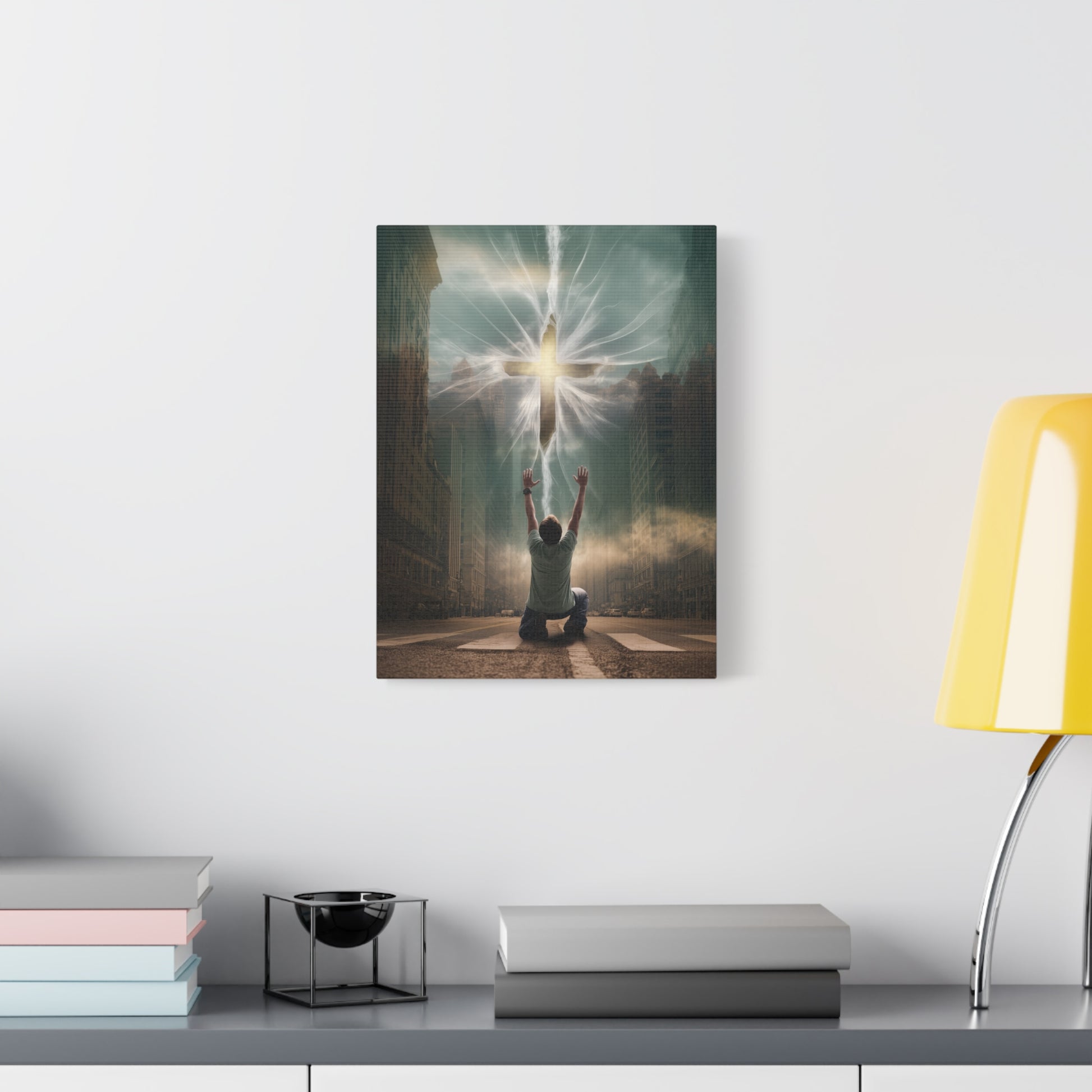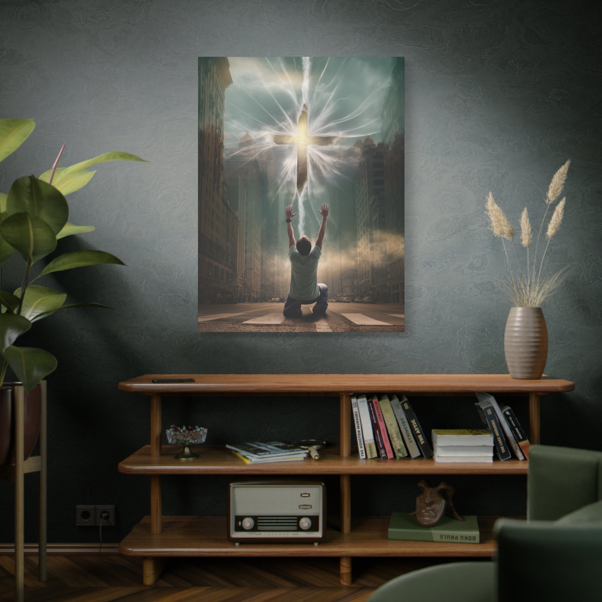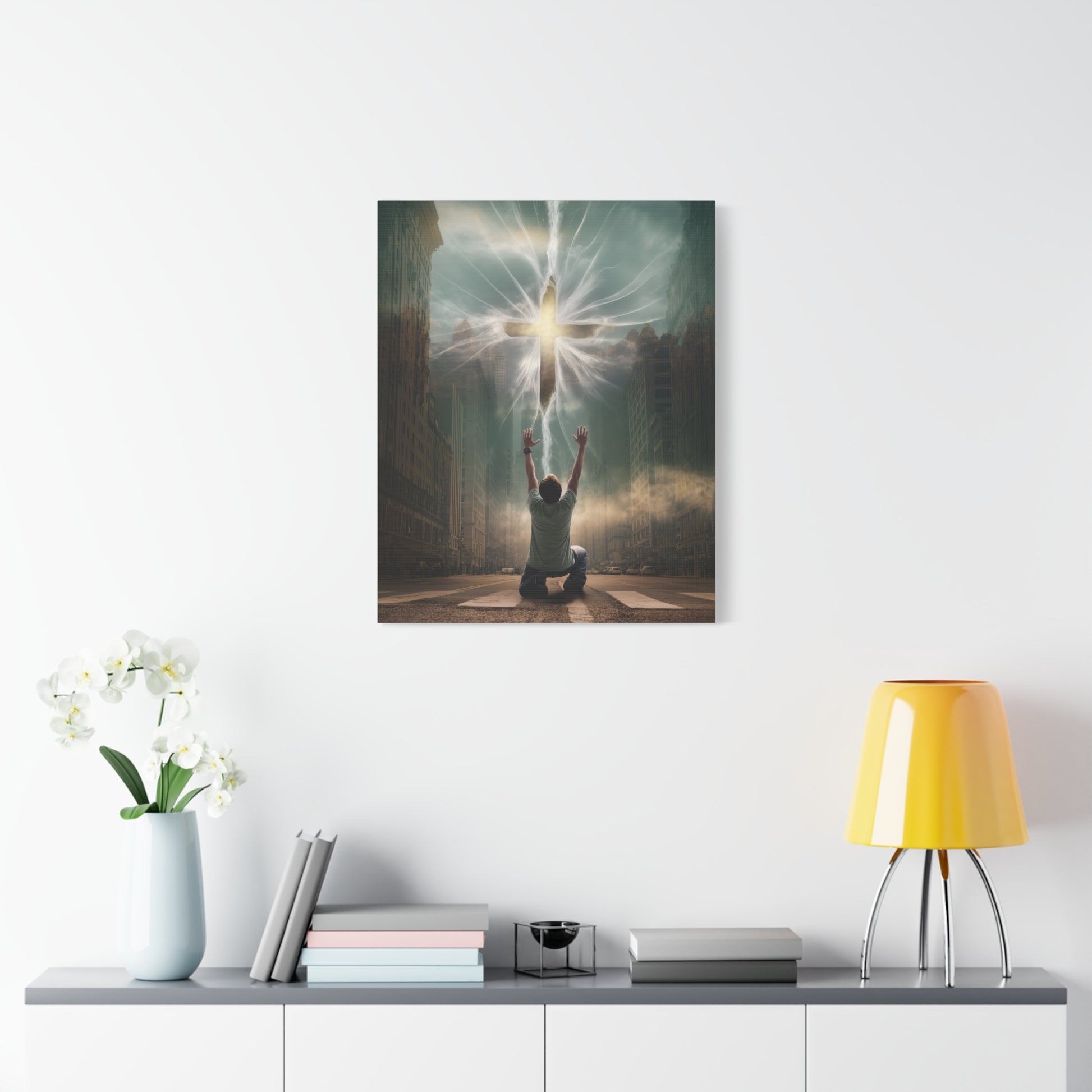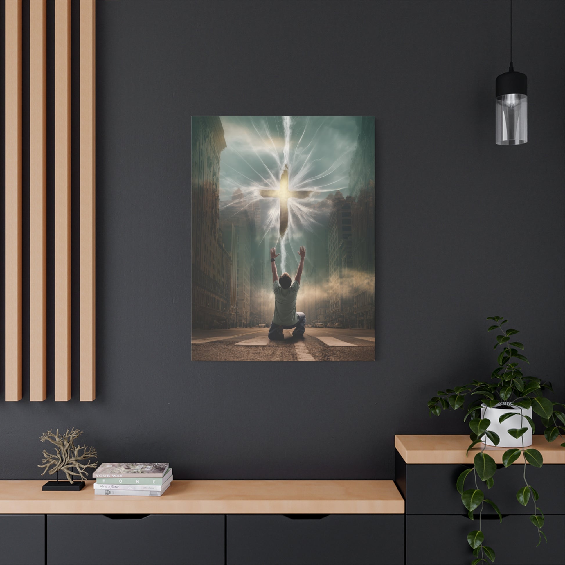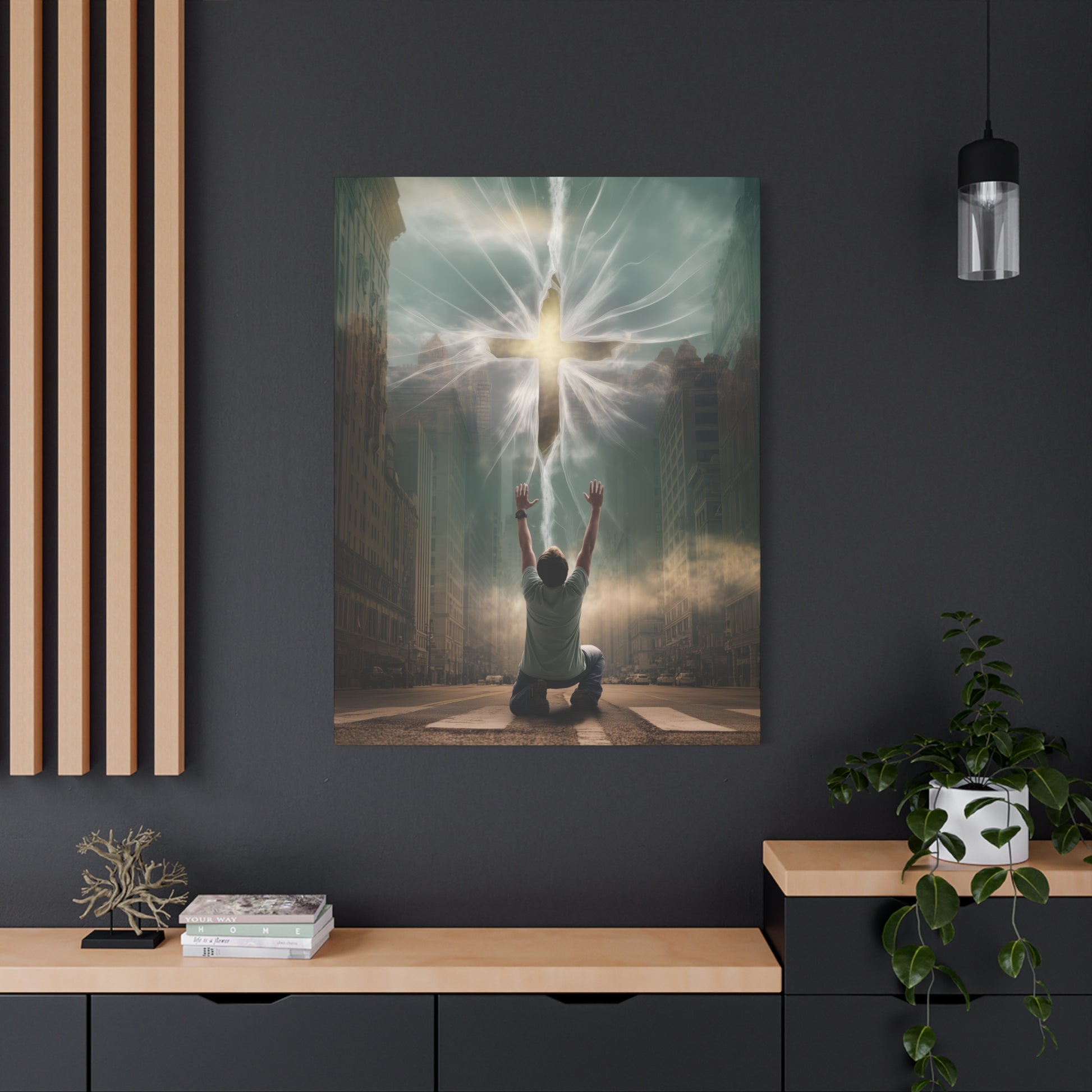 Inspired by Luke 23:44-47 when the God tore the veil of the temple in Jerusalem at the moment of Jesus death. This removed the barrier between God and humanity through Jesus Christ's sacrifice. This canvas invokes powerful imagery, showing a cross tearing through the veil that had separated God from humanity, and with Jesus' sacrifice the barrier is no more. This canvas is perfect to invoke gratitude, worship, and daily inspiration. Perfect as a gift for special occasions.
