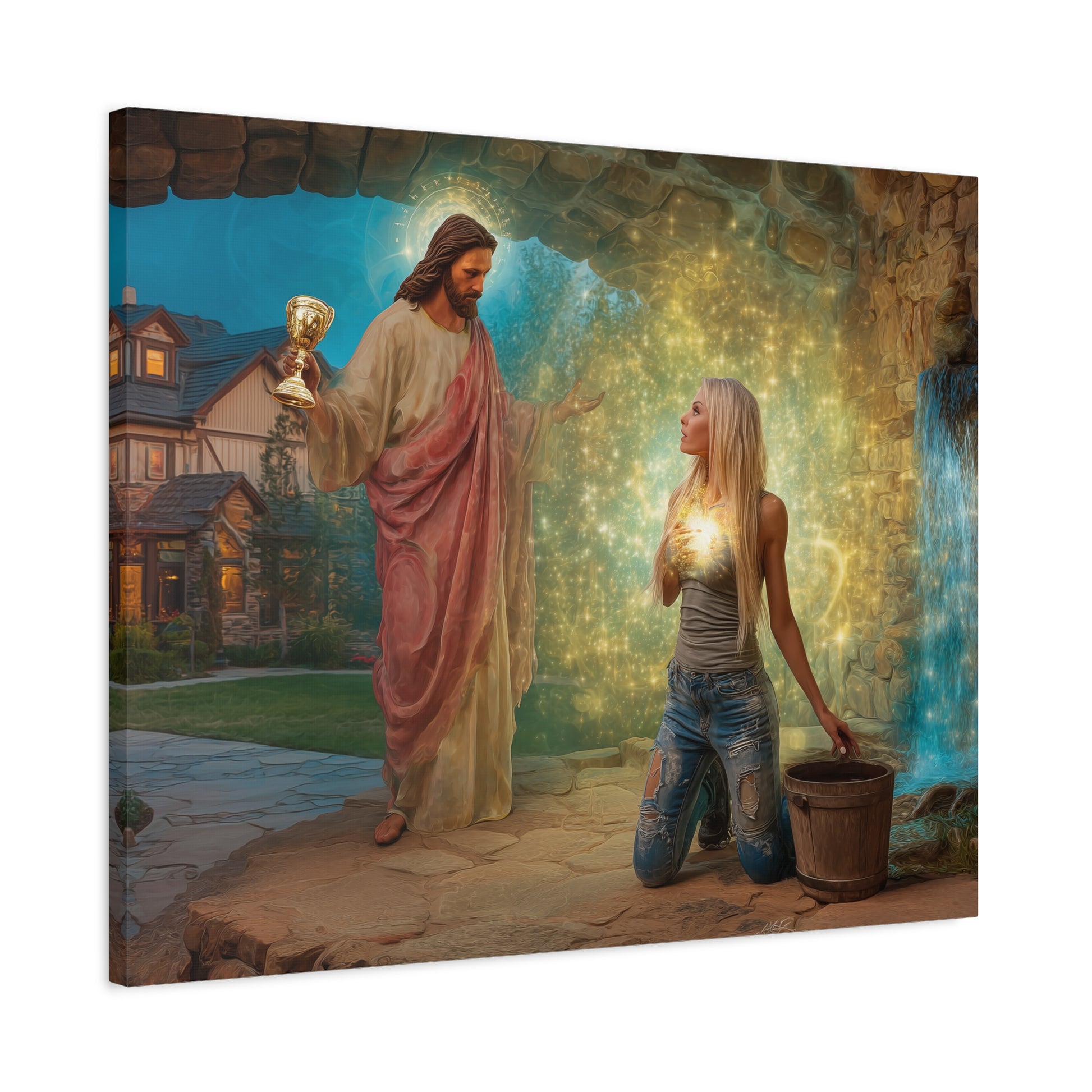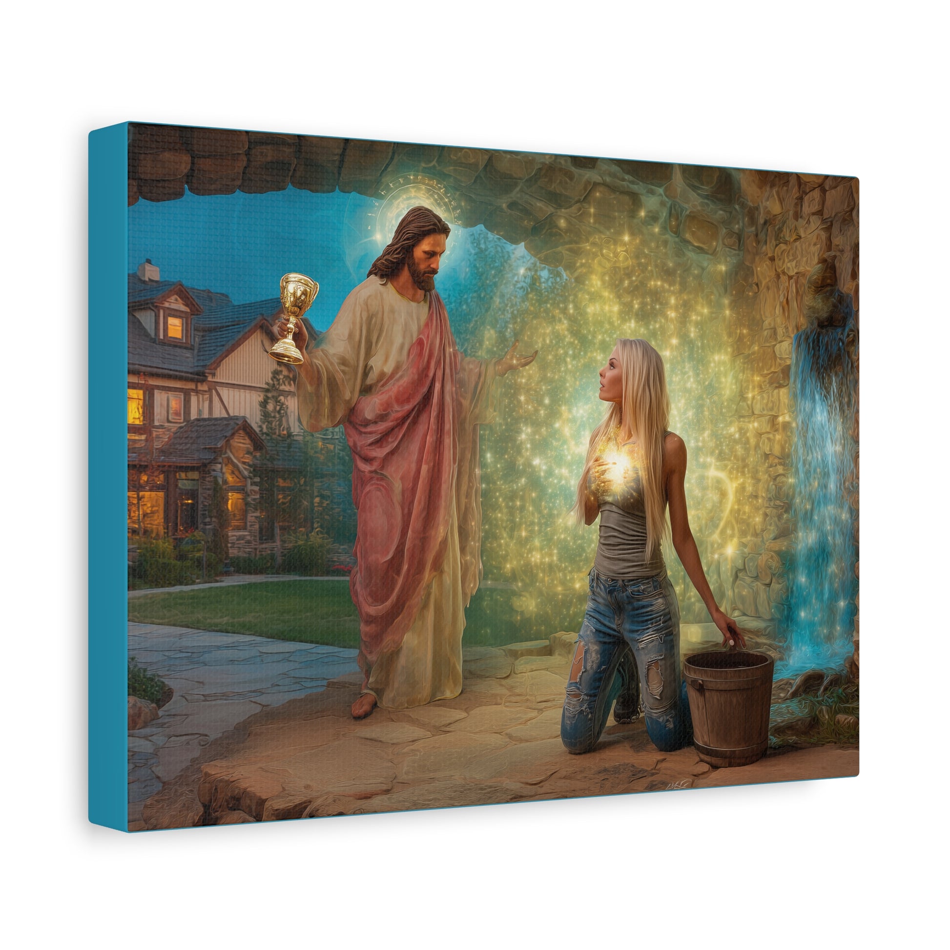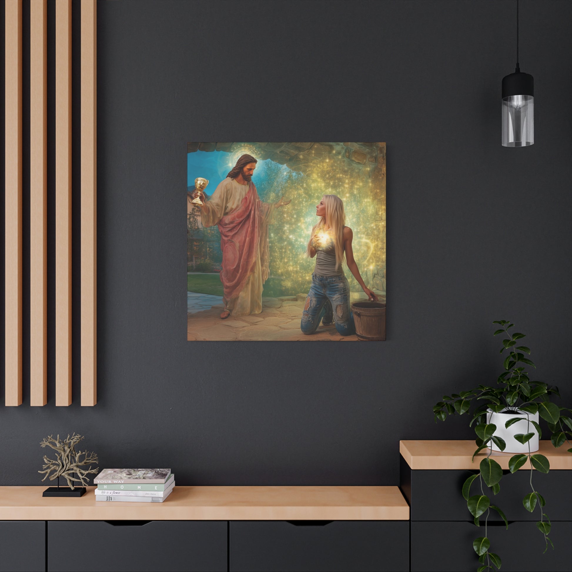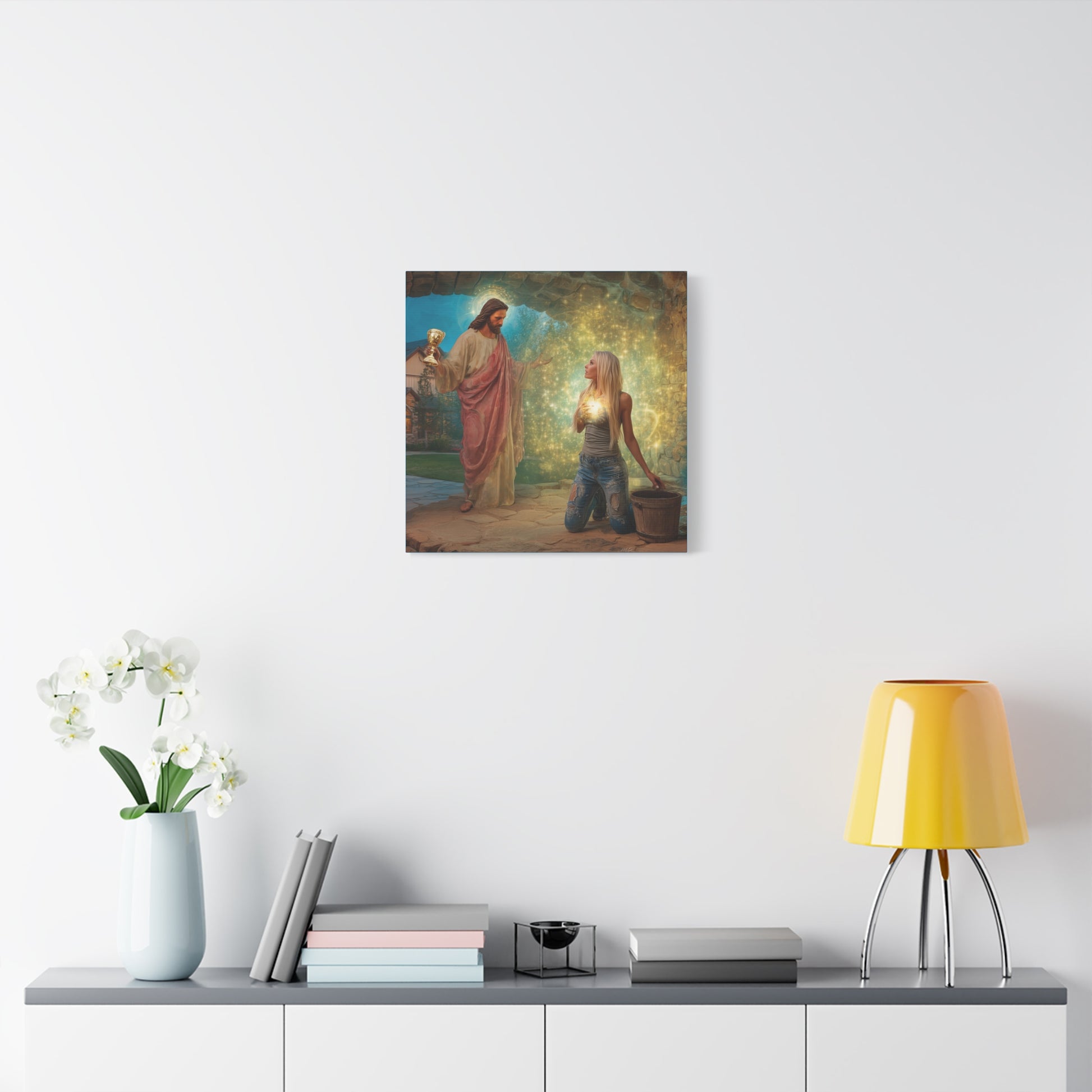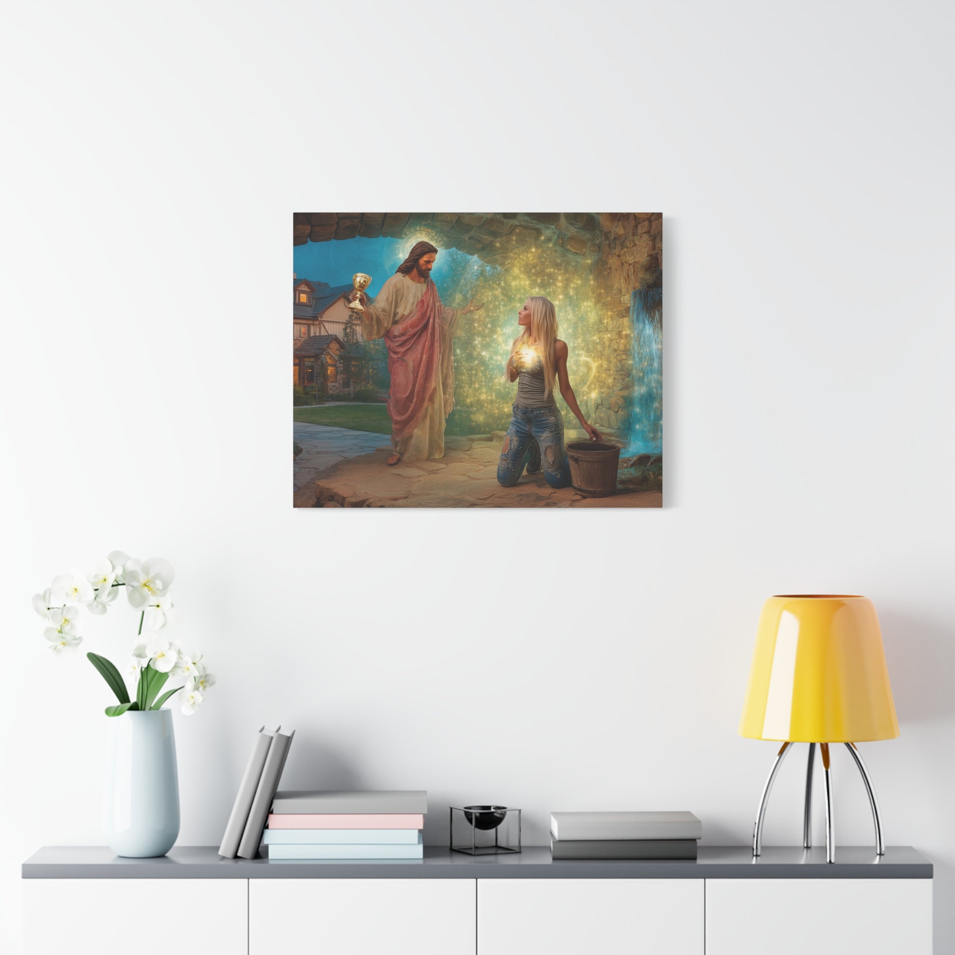 Samaritan Women at the Well with Jesus - Canvas & Poster Prints, Spiritual Wall Decor, Modern Jesus Canvas Art, Religious Decor, Faith-Based Art, Christian Gift