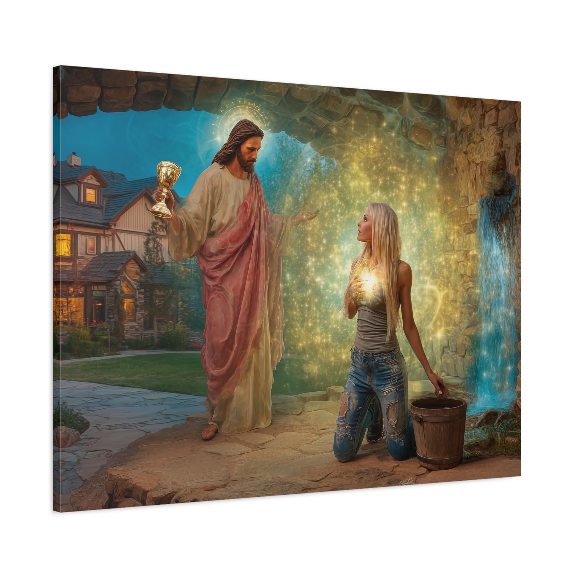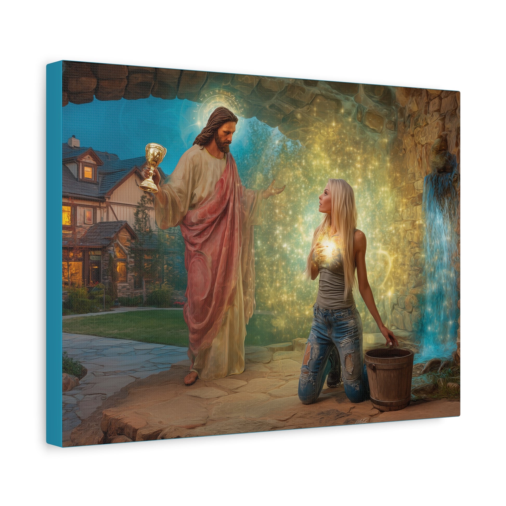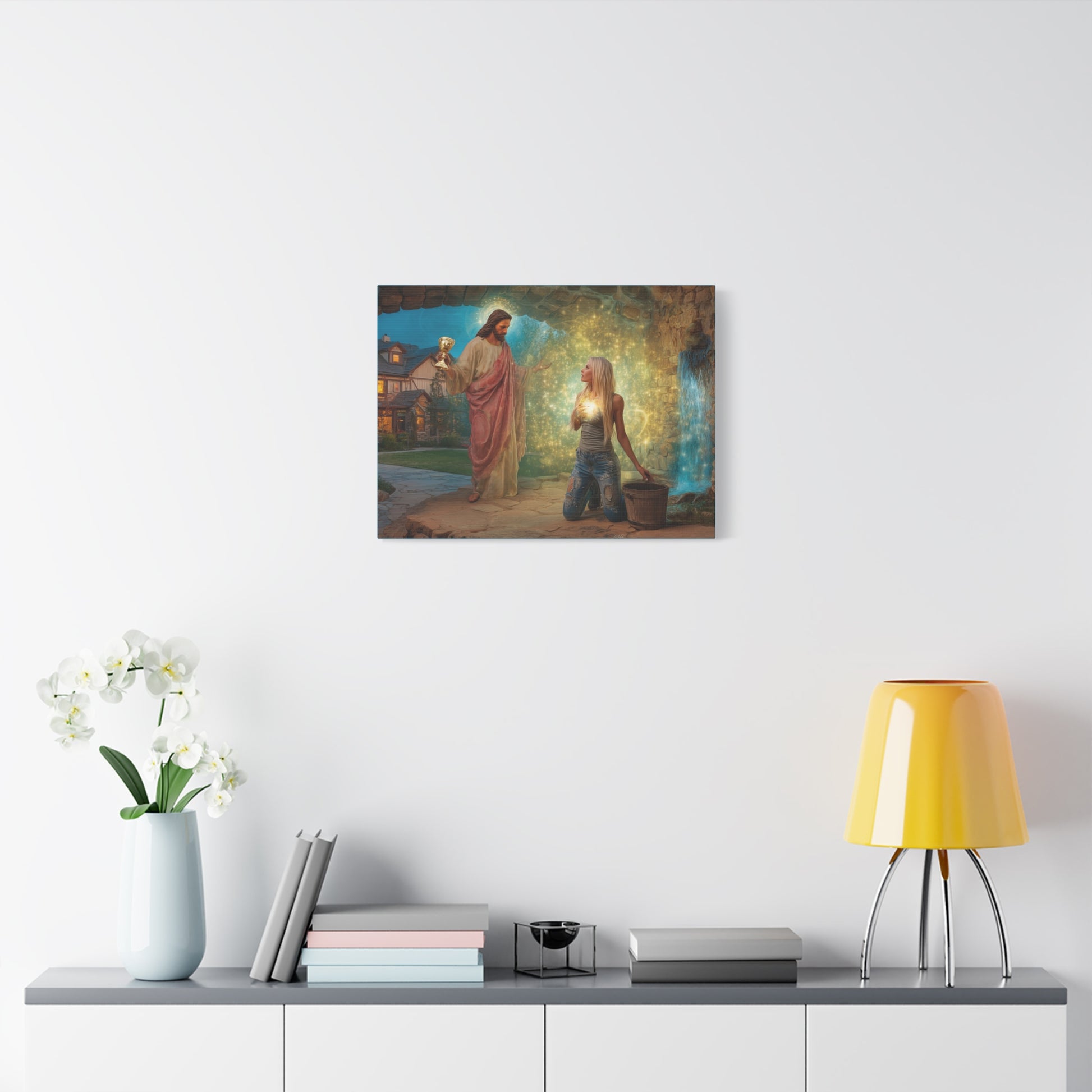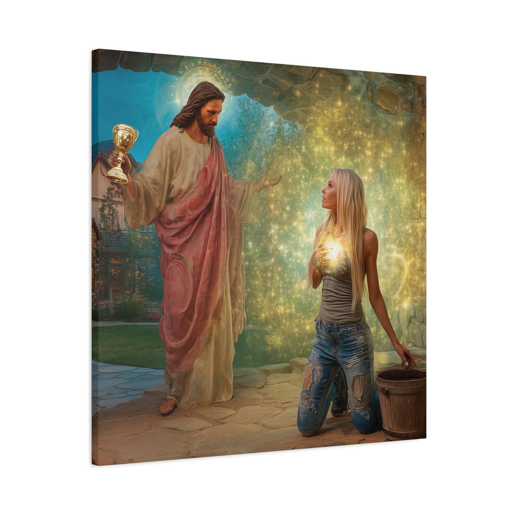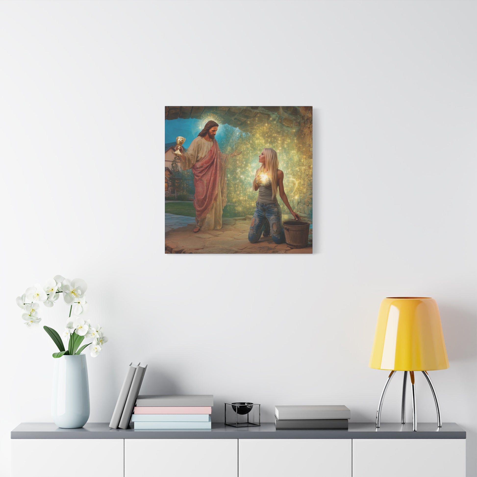 Samaritan Women at the Well with Jesus - Canvas & Poster Prints, Spiritual Wall Decor, Modern Jesus Canvas Art, Religious Decor, Faith-Based Art, Christian Gift
