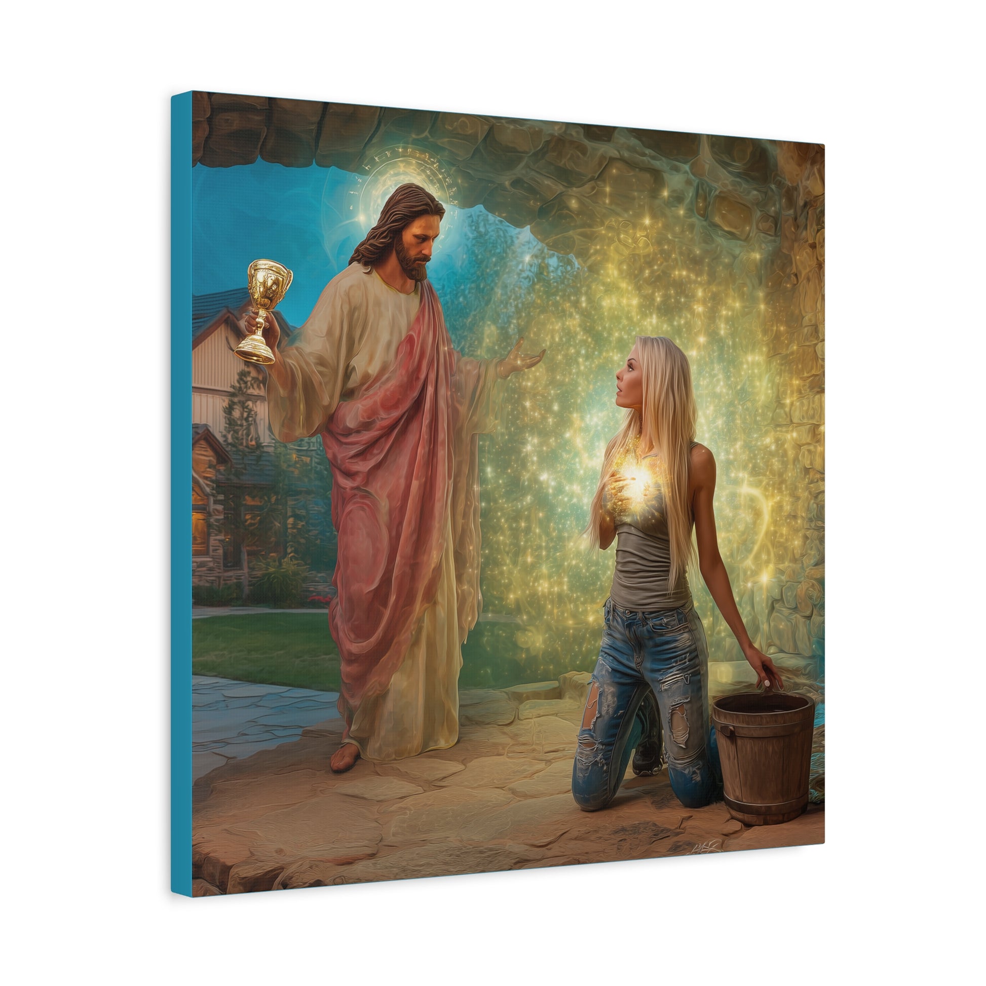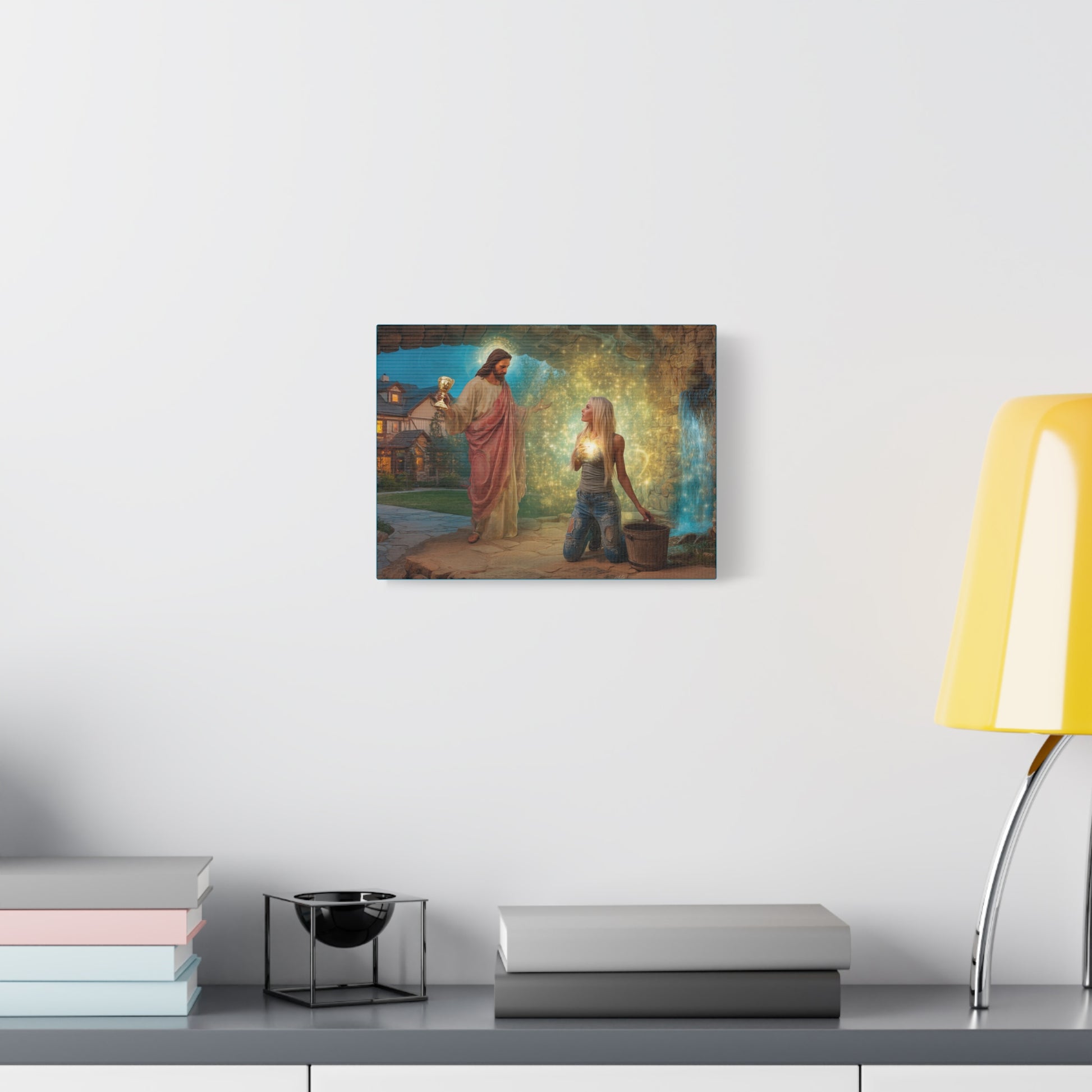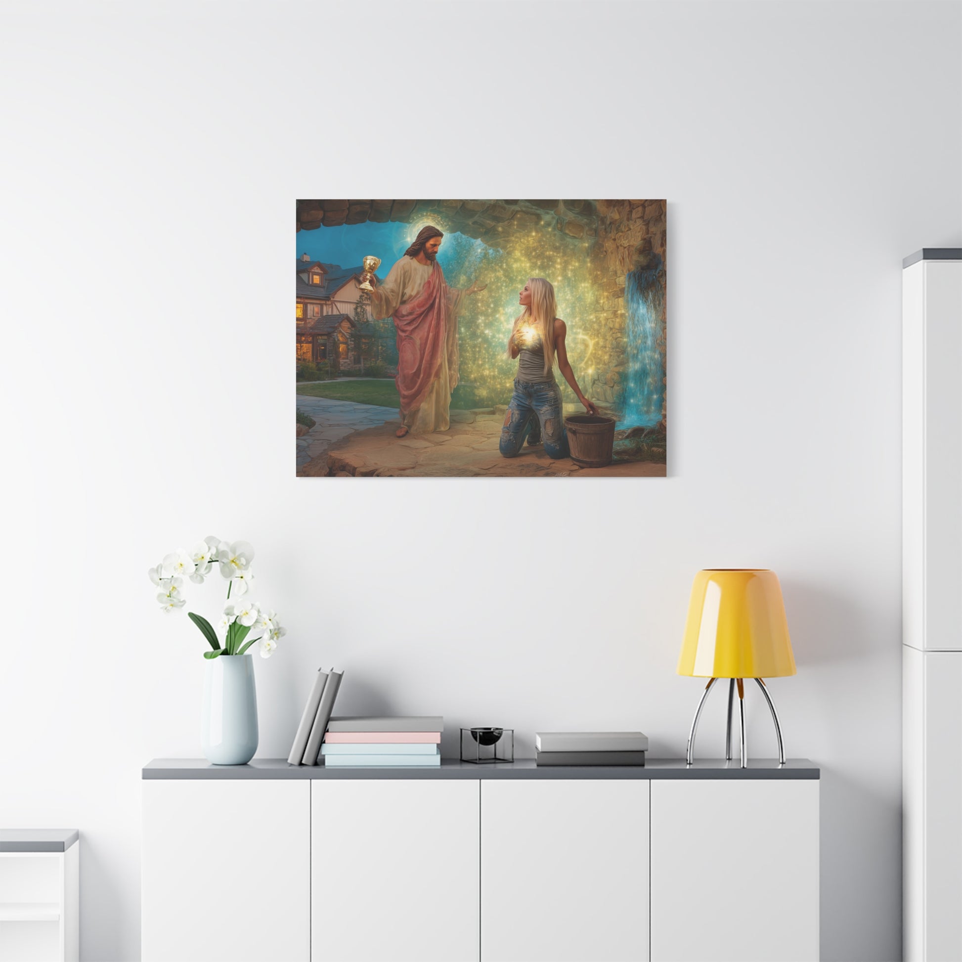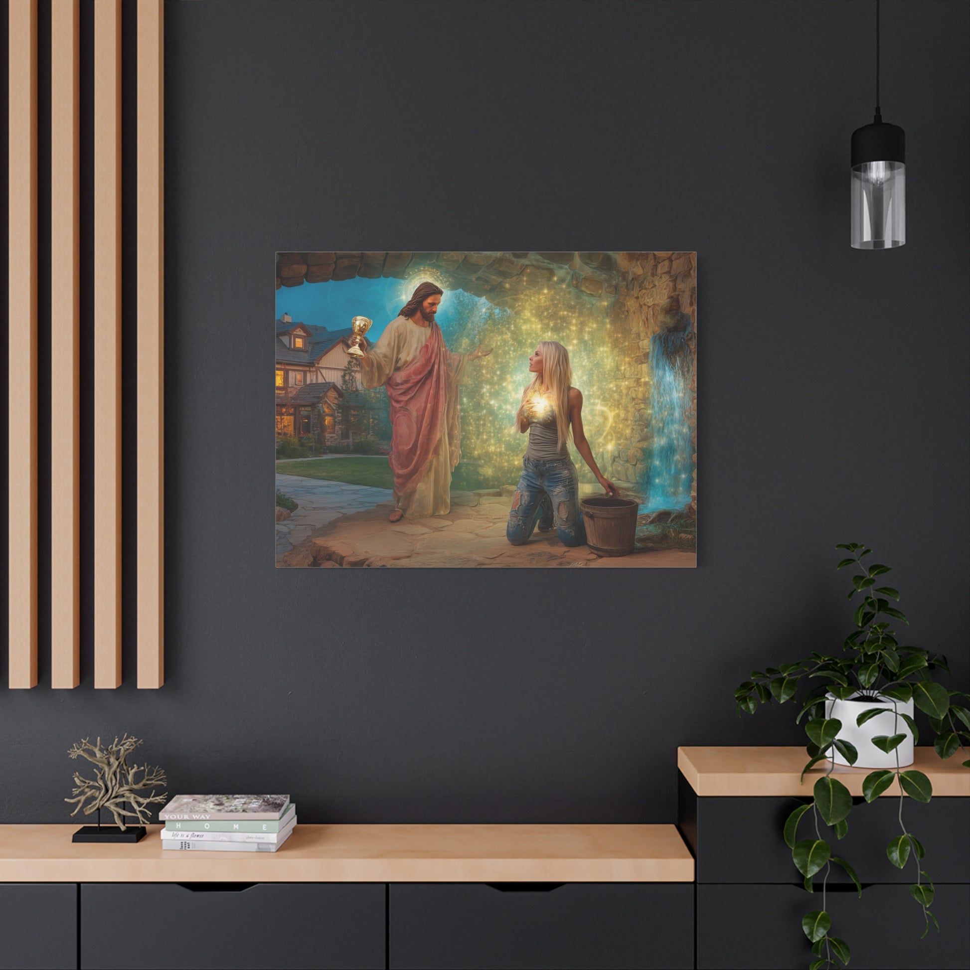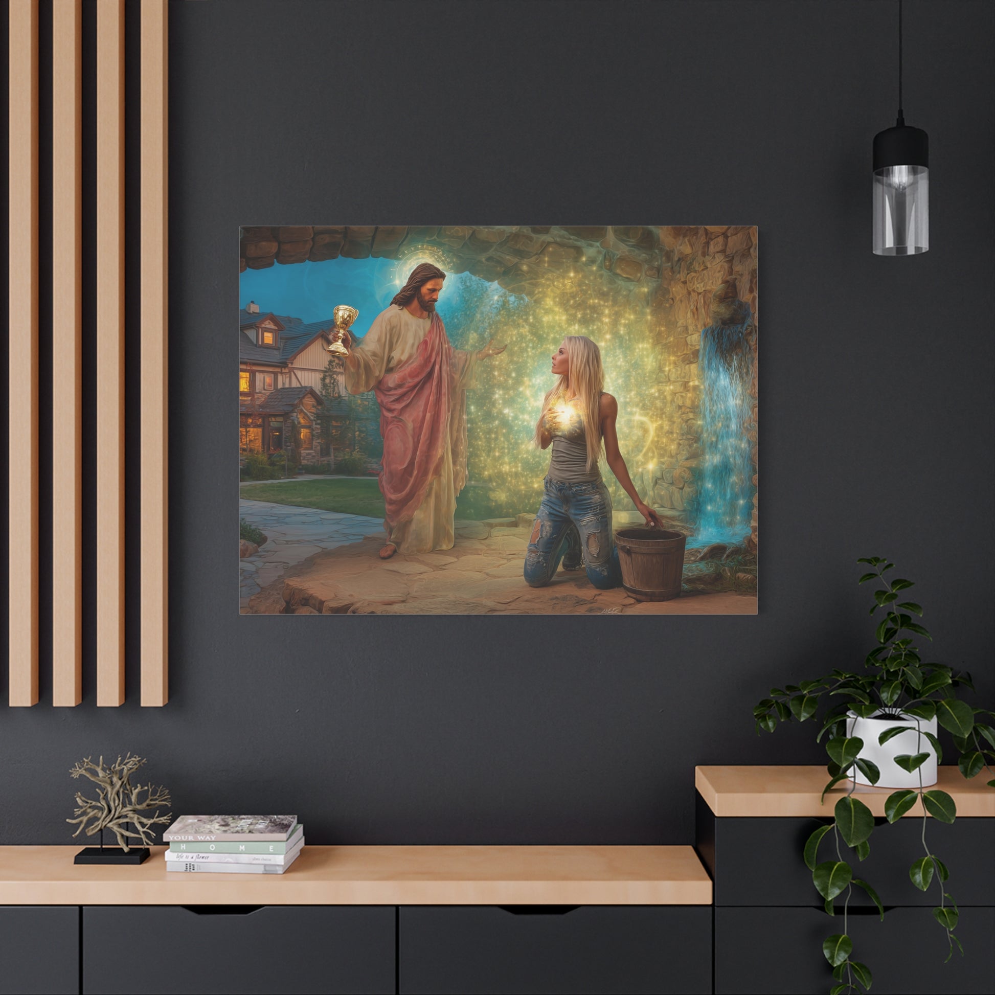 Samaritan Women at the Well with Jesus - Canvas & Poster Prints, Spiritual Wall Decor, Modern Jesus Canvas Art, Religious Decor, Faith-Based Art, Christian Gift
