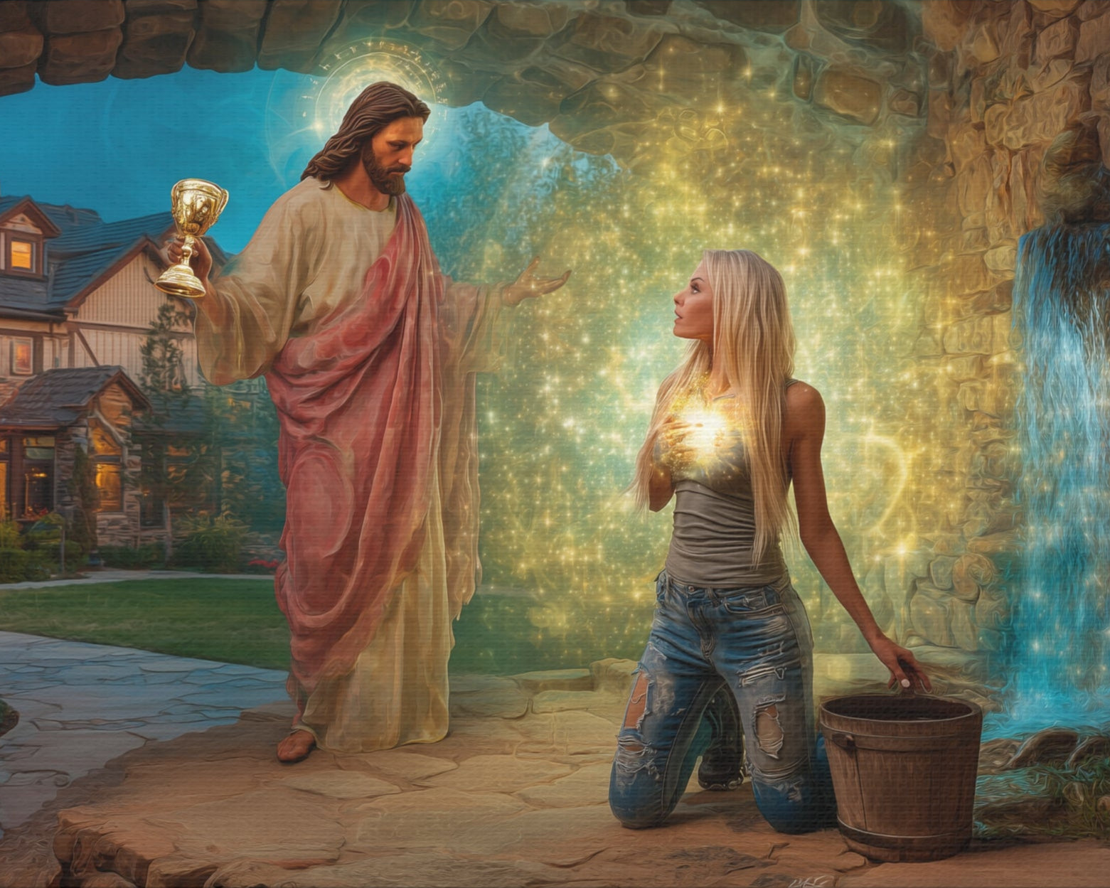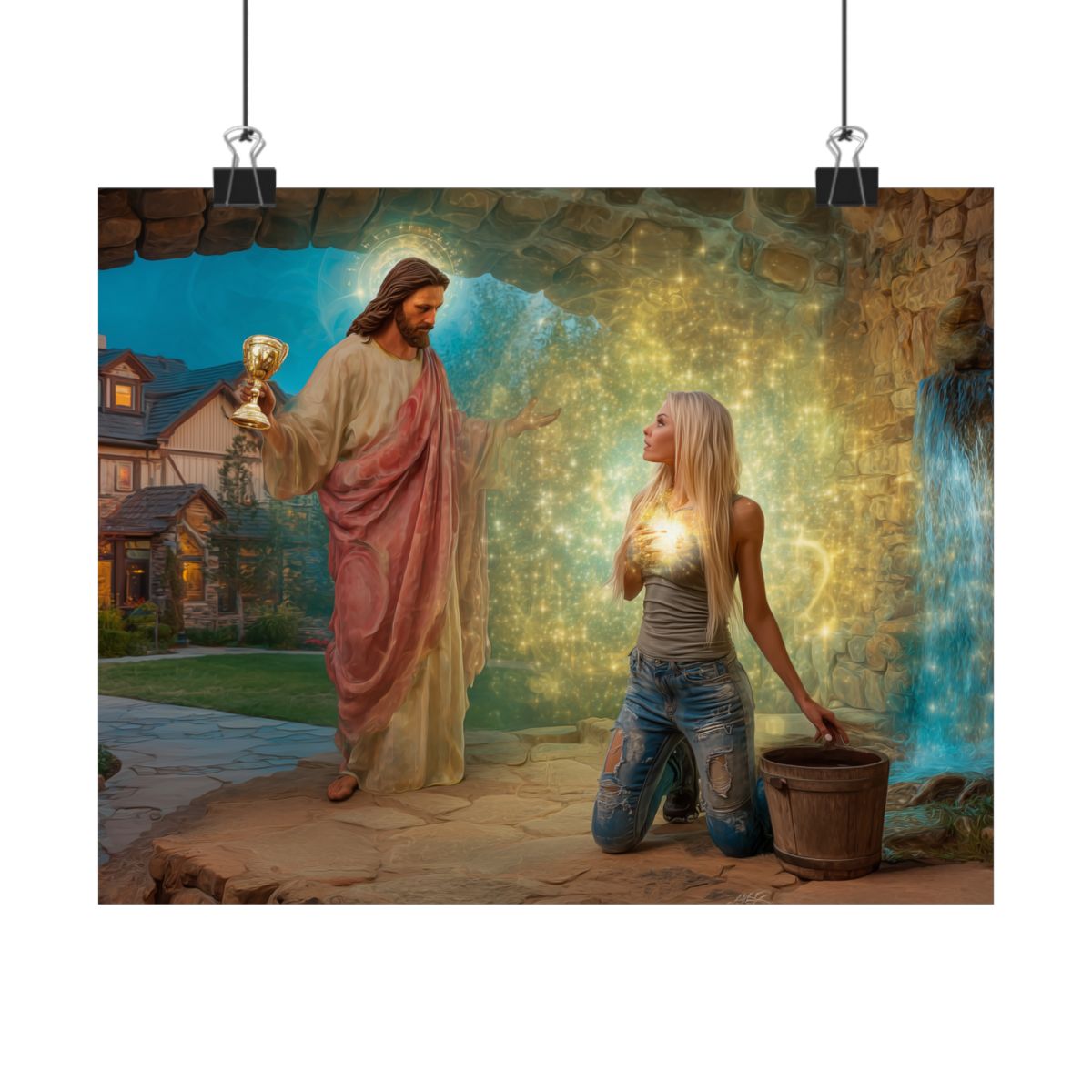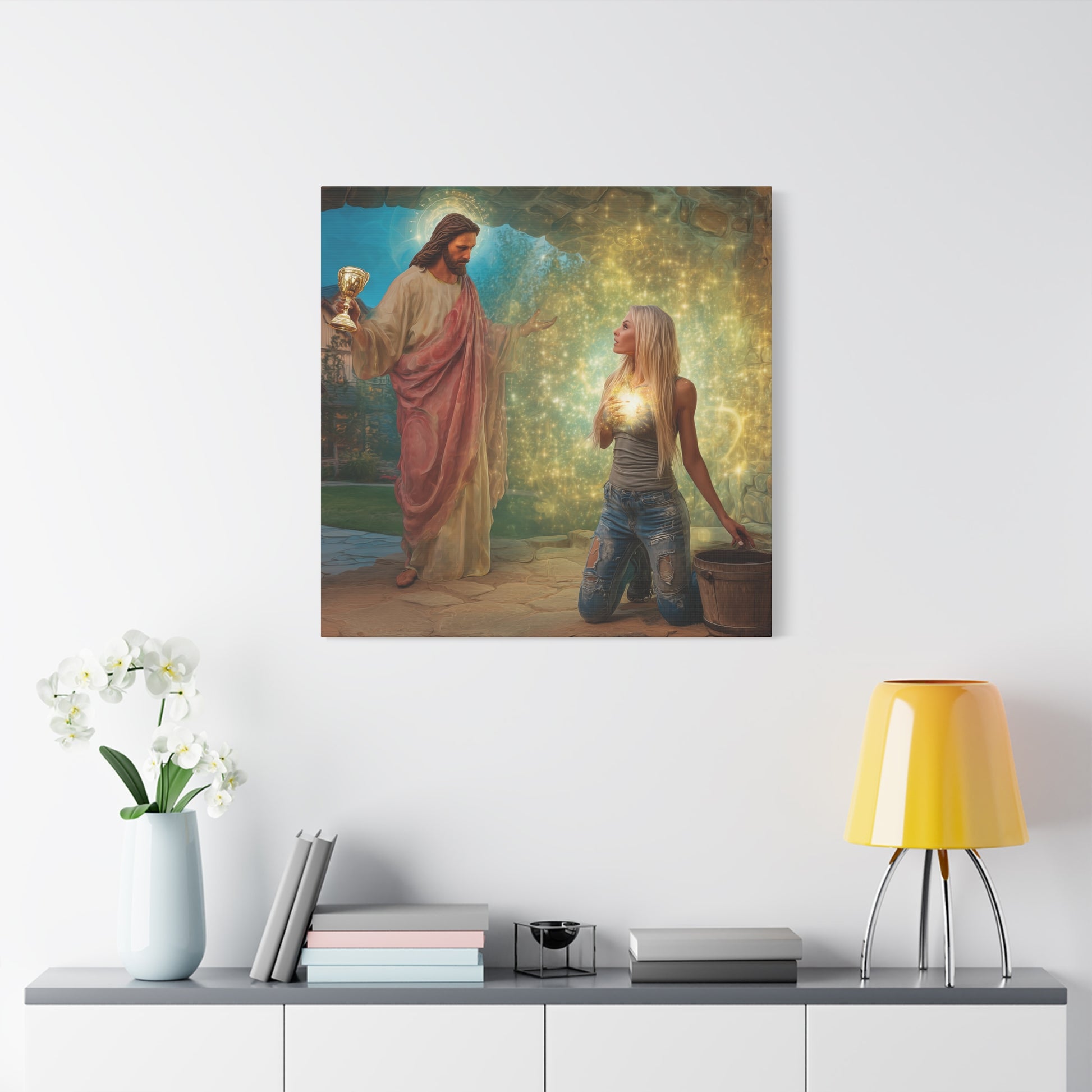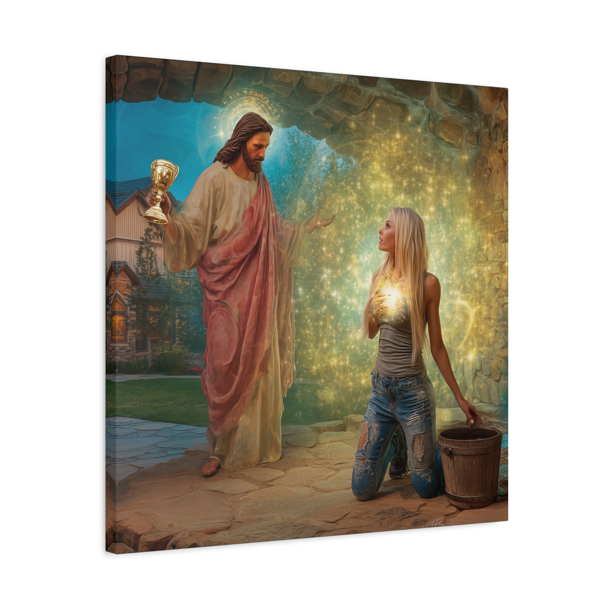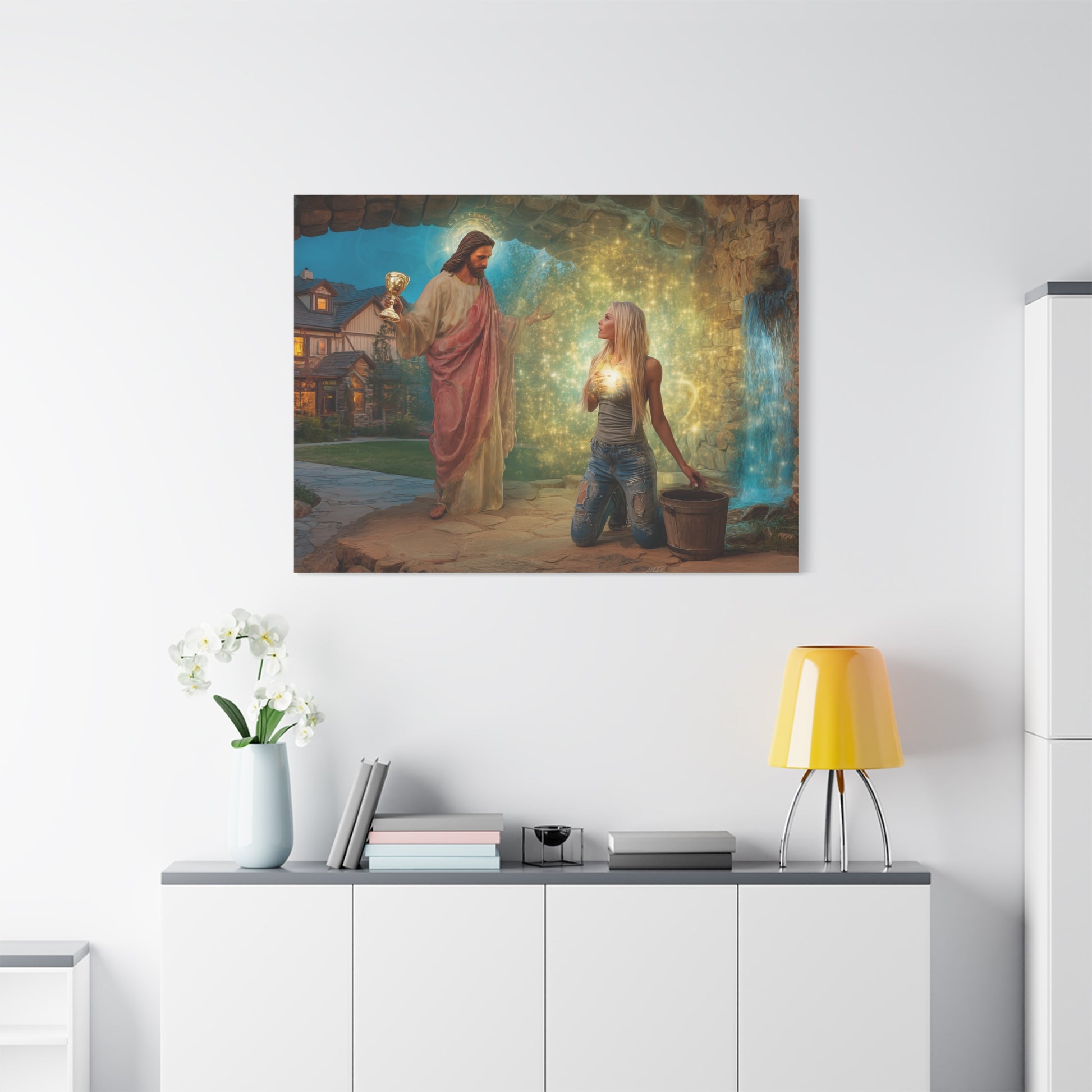 Samaritan Women at the Well with Jesus - Canvas & Poster Prints, Spiritual Wall Decor, Modern Jesus Canvas Art, Religious Decor, Faith-Based Art, Christian Gift
